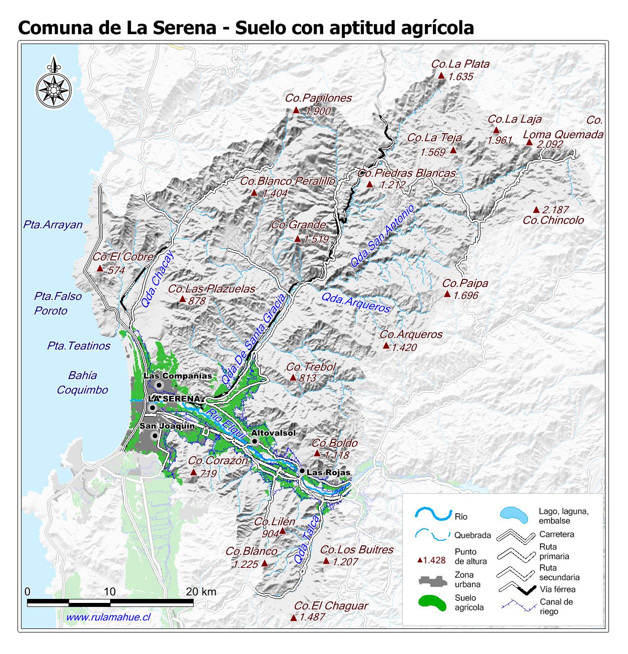 Mapa de la distribución de los suelos con aptitud agrícola según CIREN.