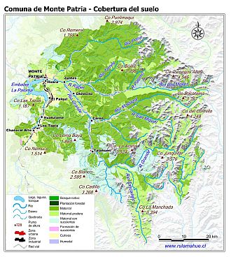 Mapa de la cobertura del suelo por unidad del relieve según el Catastro de Cobertura del Suelo del año 2014 (fuente: sit.conaf.cl)
