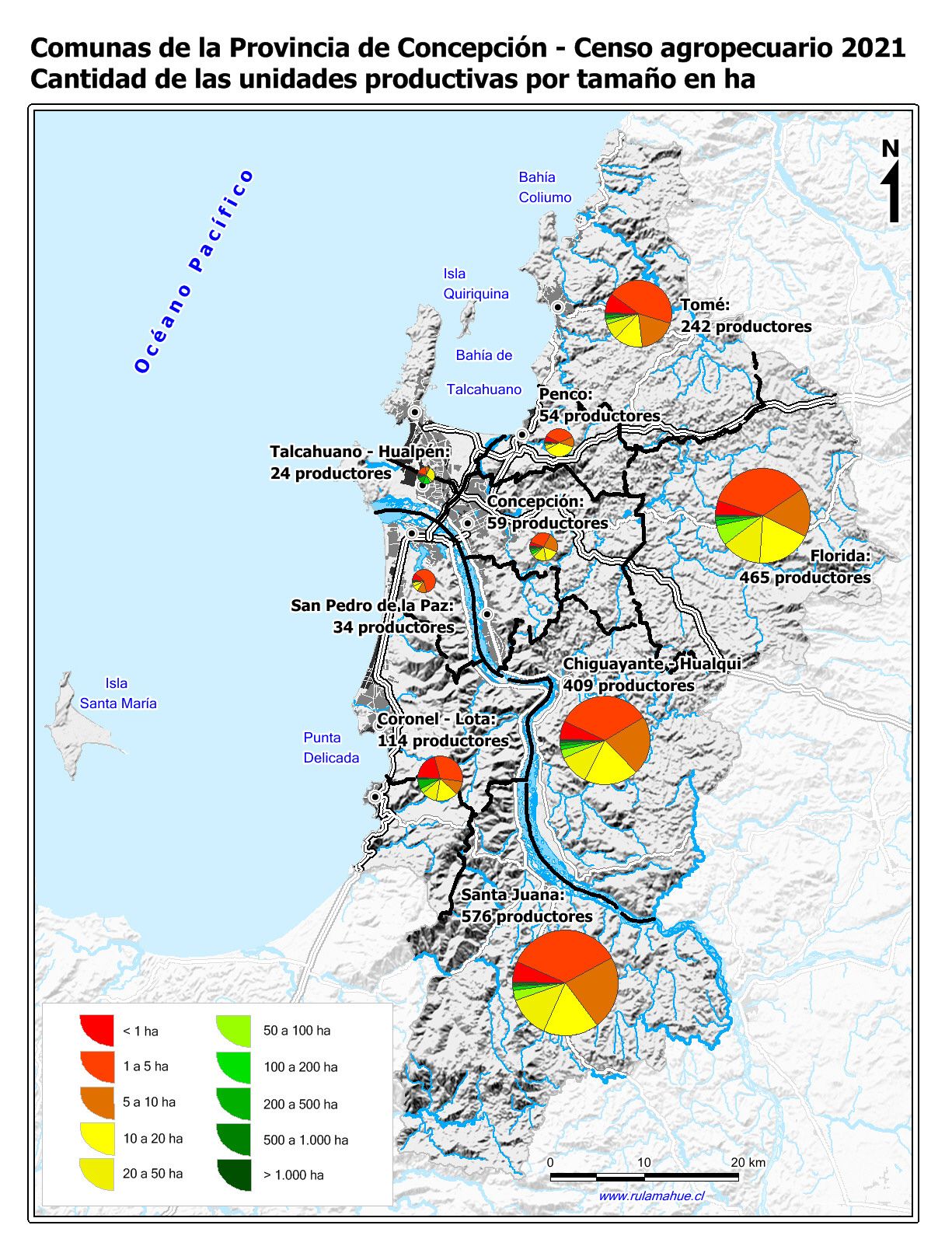 Cantidad de las unidades productivas por tamaño en ha.