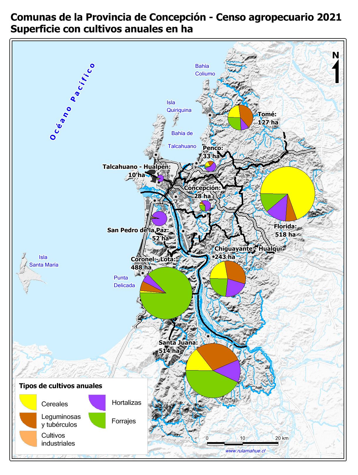 Superficie con cultivos anuales en ha.