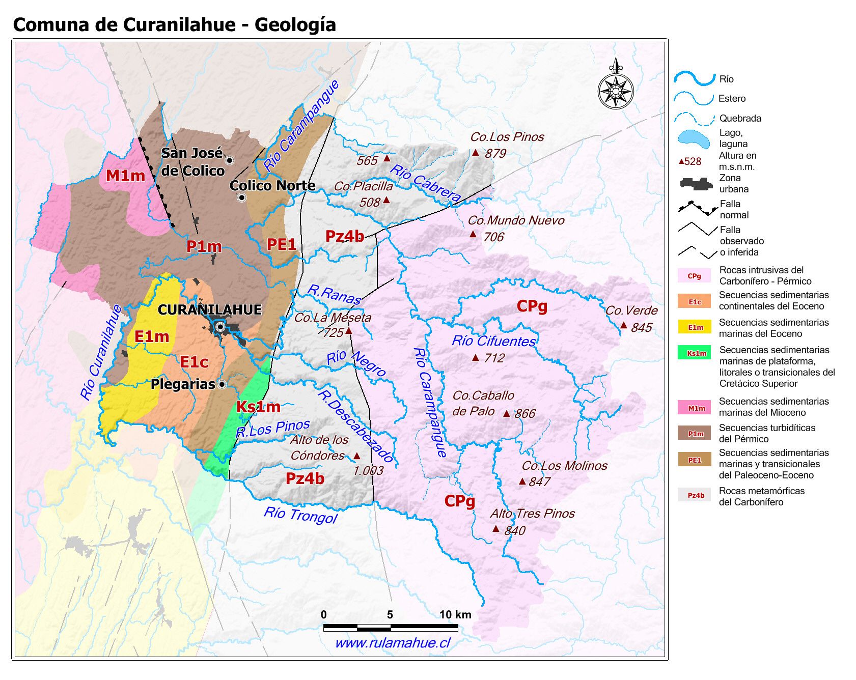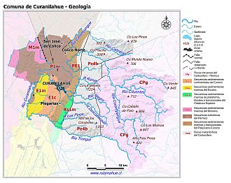 Mapa de la geología según la información proporcionada por SERNAGEOMIN.