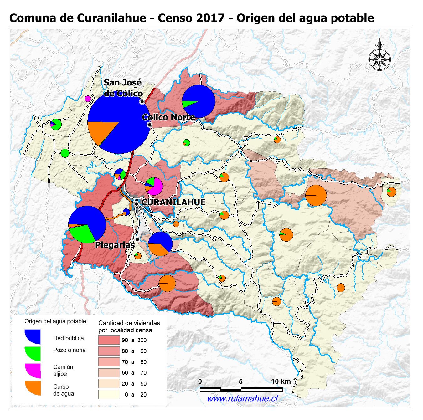 Mapa que informa el orígen del agua potable en las viviendas por localidad censal según el Censo Nacional de Población y Vivienda 2017.