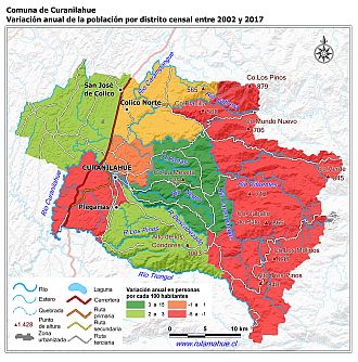 Mapa con la variación anual de la población entre los Censos Nacionales de Población y Vivienda de 2002 y 2017, expresado en personas por cada 100 habitantes.