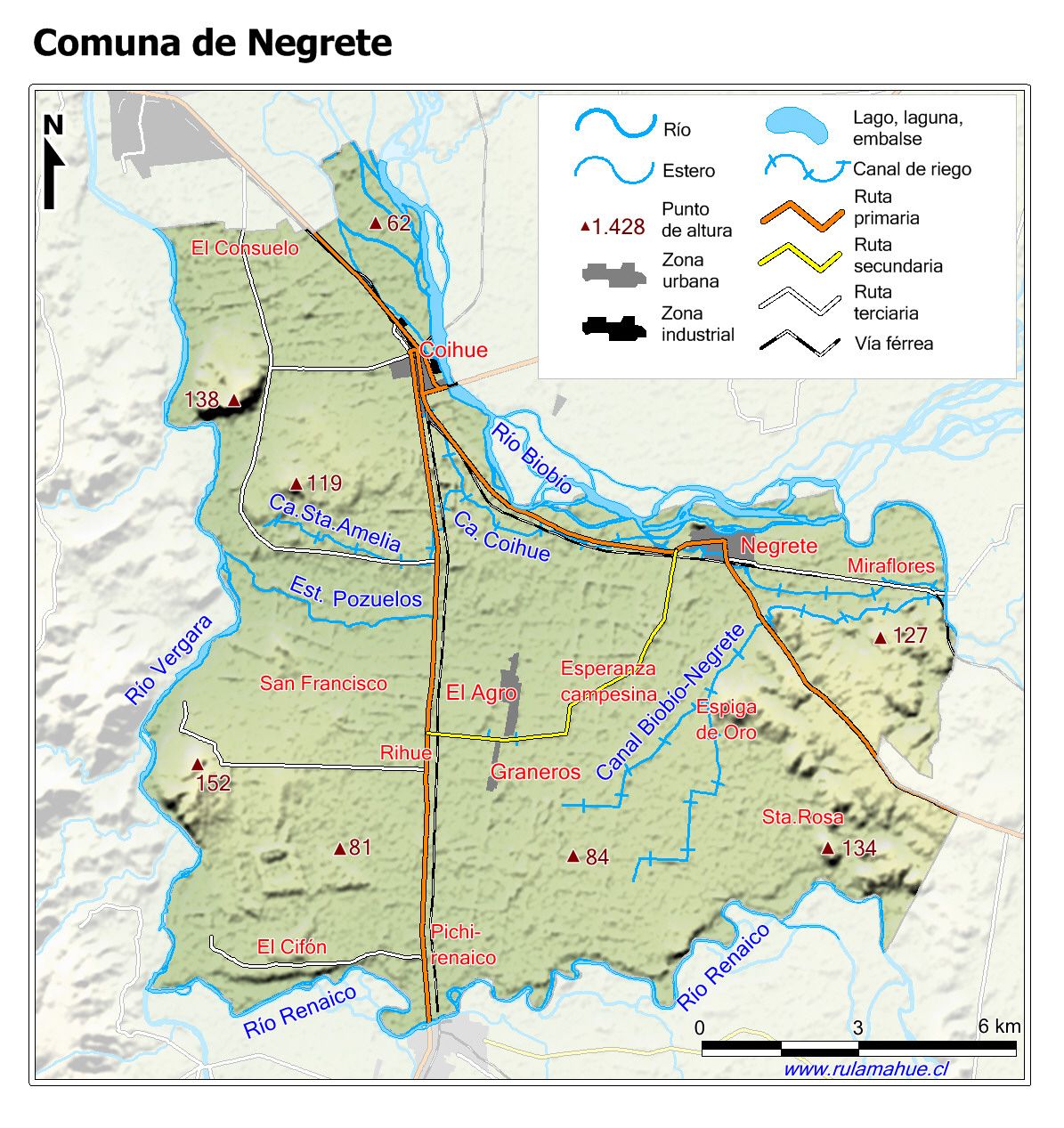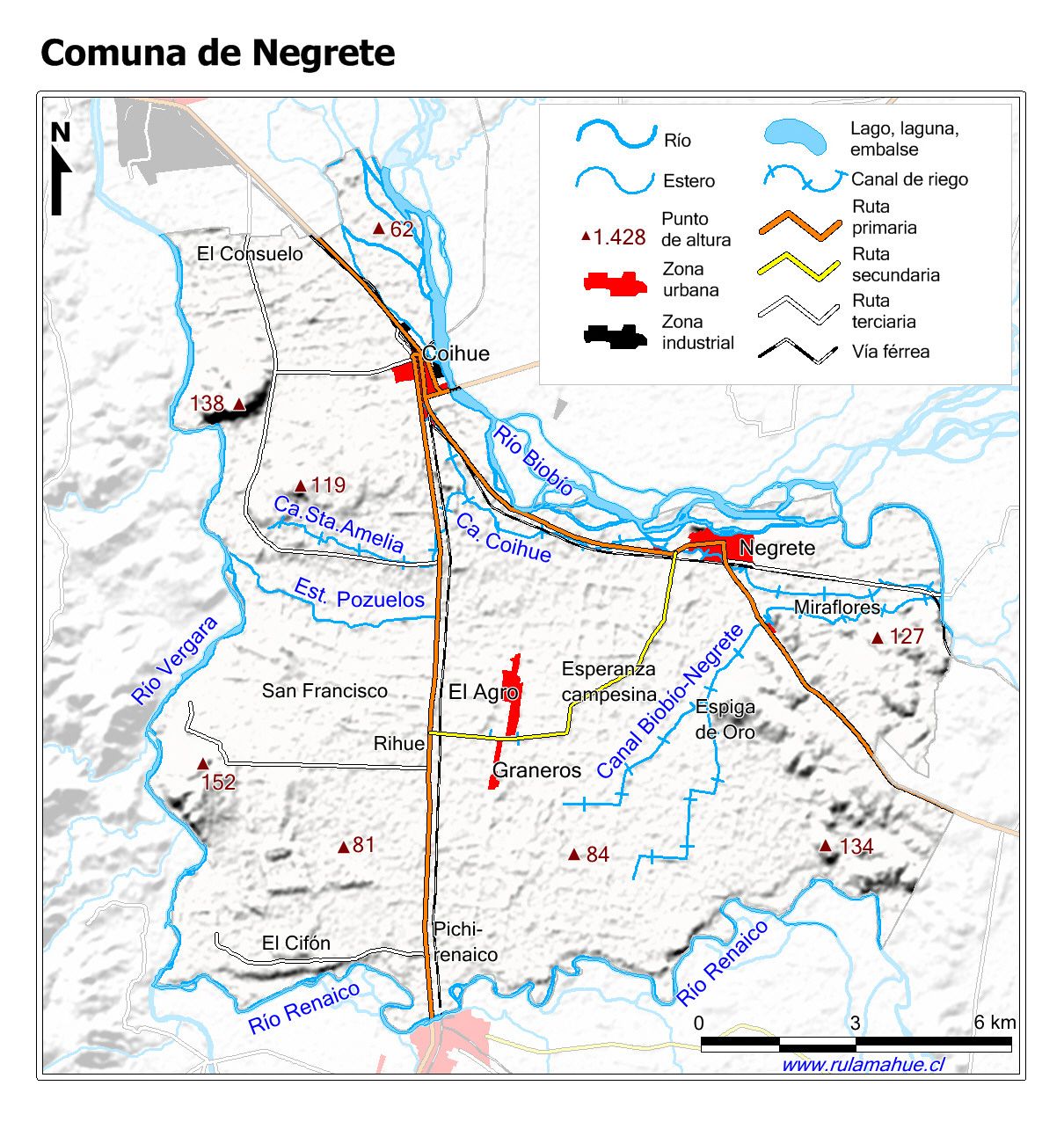 Mapa base de la Comuna con fondo coloreado.