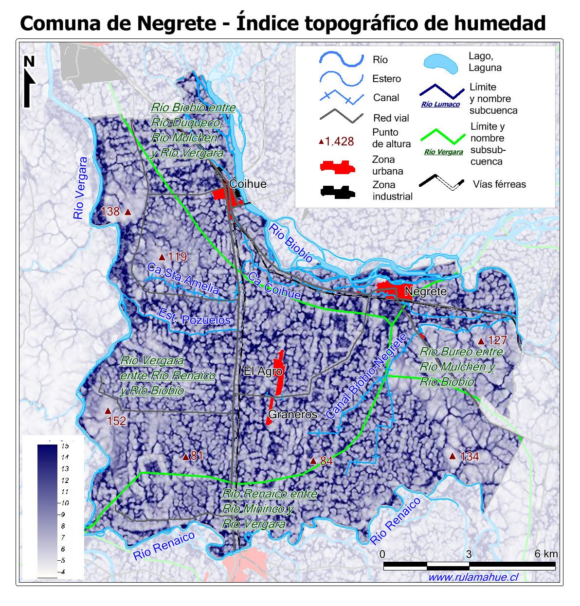 Mapa de los índices topográficos de humedad.
