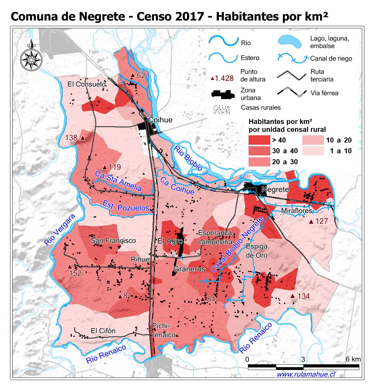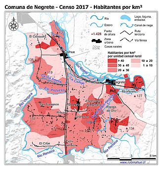 Mapa de habitantes por km2 por entidad rural según datos del Censo Nacional de Población y Vivienda 2017.
