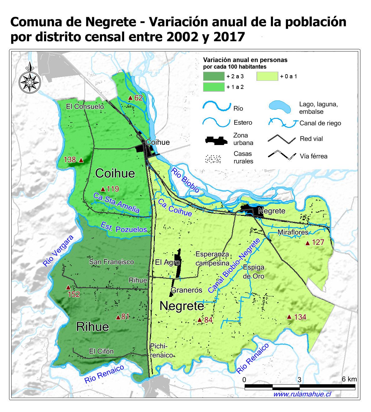 Mapa con la variación anual de la población entre los Censos Nacionales de Población y Vivienda de 2002 y 2017, expresado en personas por 100 habitantes.