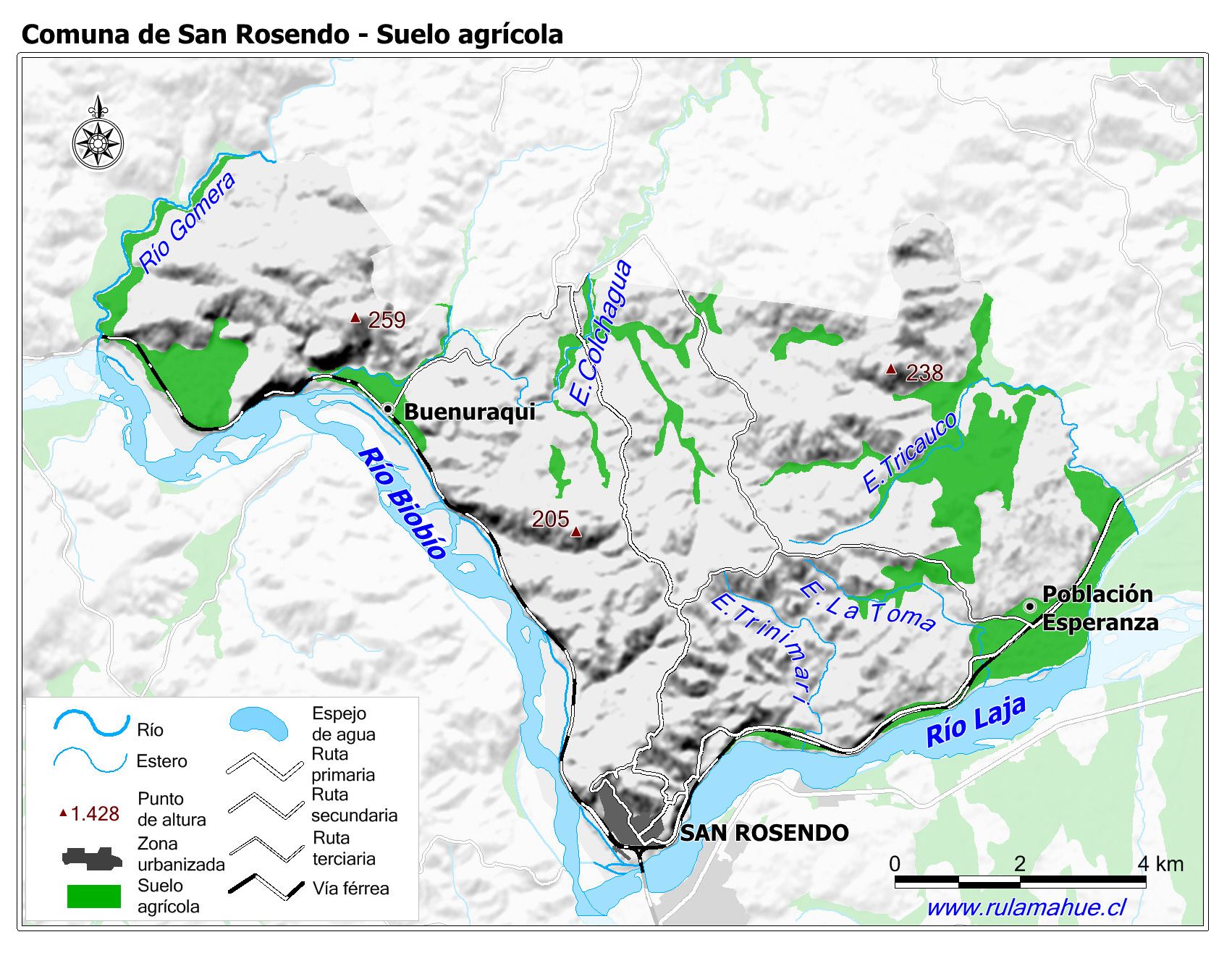 Mapa de la distribución de los suelos con aptitud agrícola según la información proporcionada por CIREN.