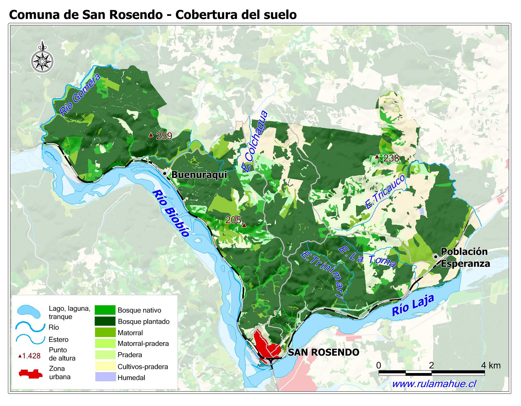 Mapa de la cobertura del suelo según el Catastro de Recursos Vegetacionales del año 2015 (fuente: sit.conaf.cl).