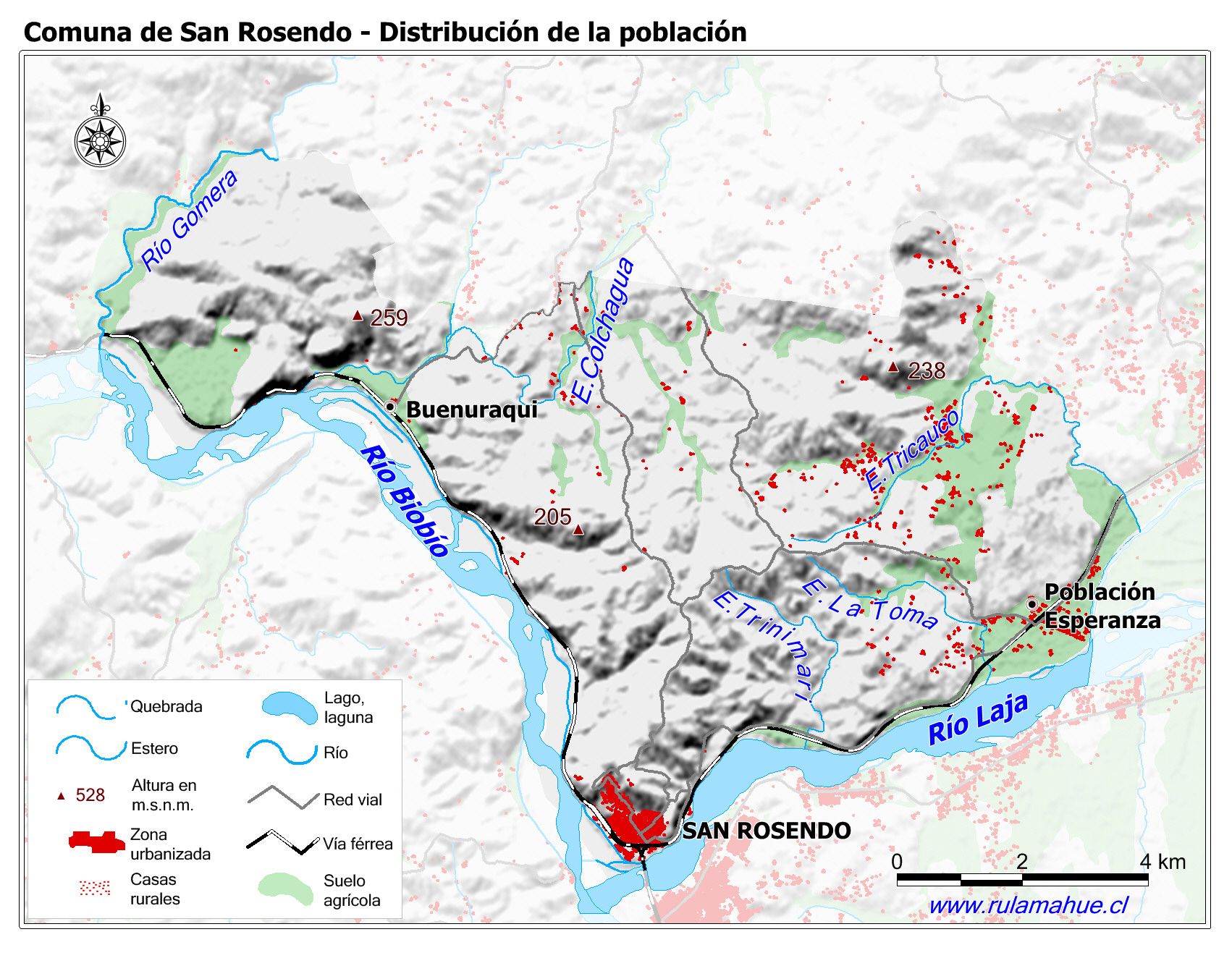 Mapa que muestra la ubicación y expansión de las zonas urbanas y la distribución de las casas rurales (fuente: Google Open Buildings Data).