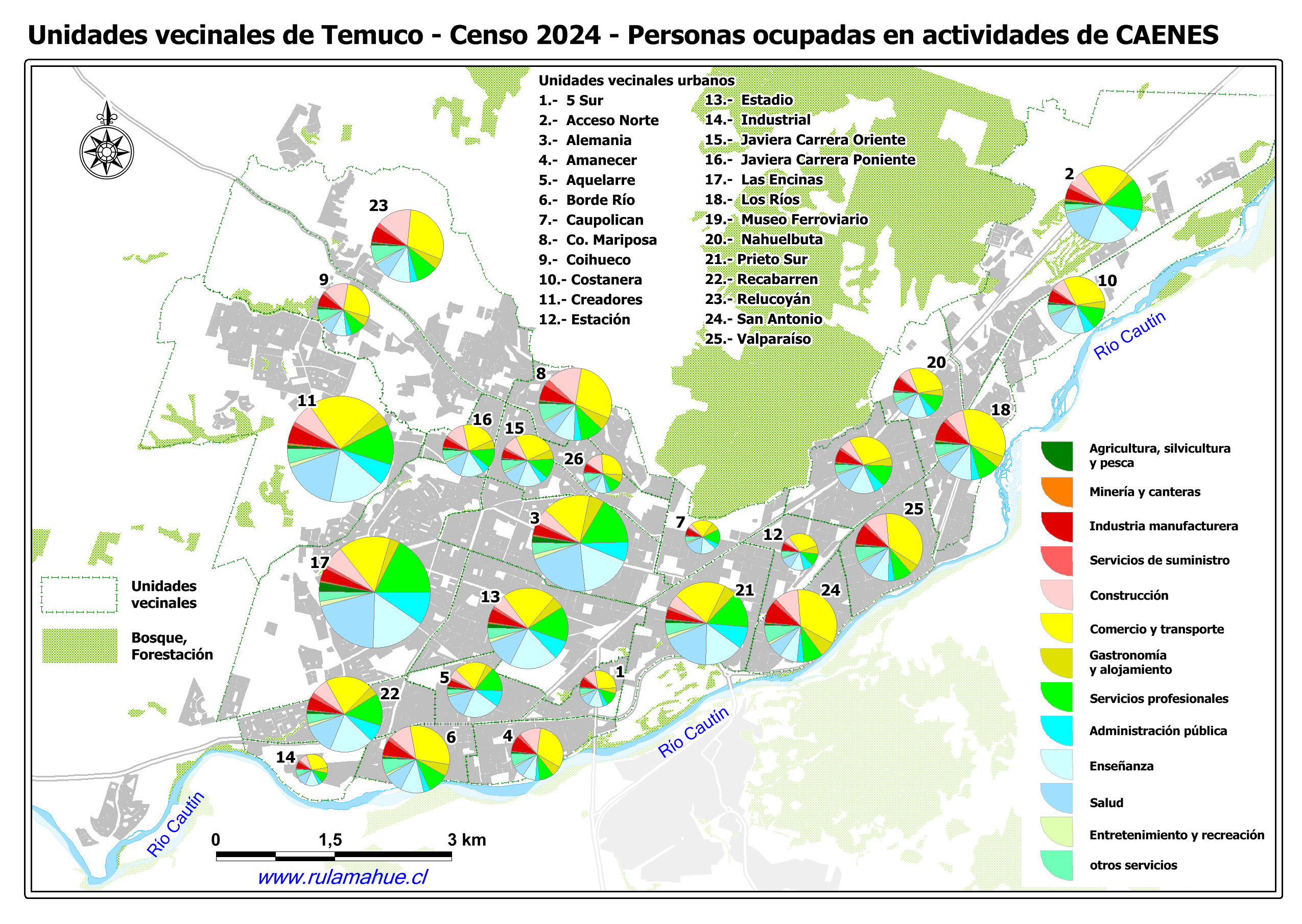 Unidades vecinales de Temuco, Personas ocupadas por grupo CAENES.