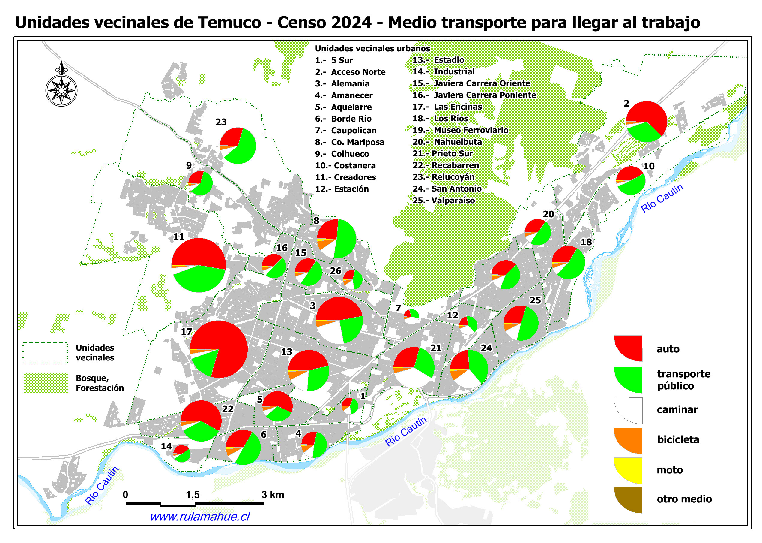 Unidades vecinales de Temuco, Medio de transporte de las personas para llegar al trabajo.