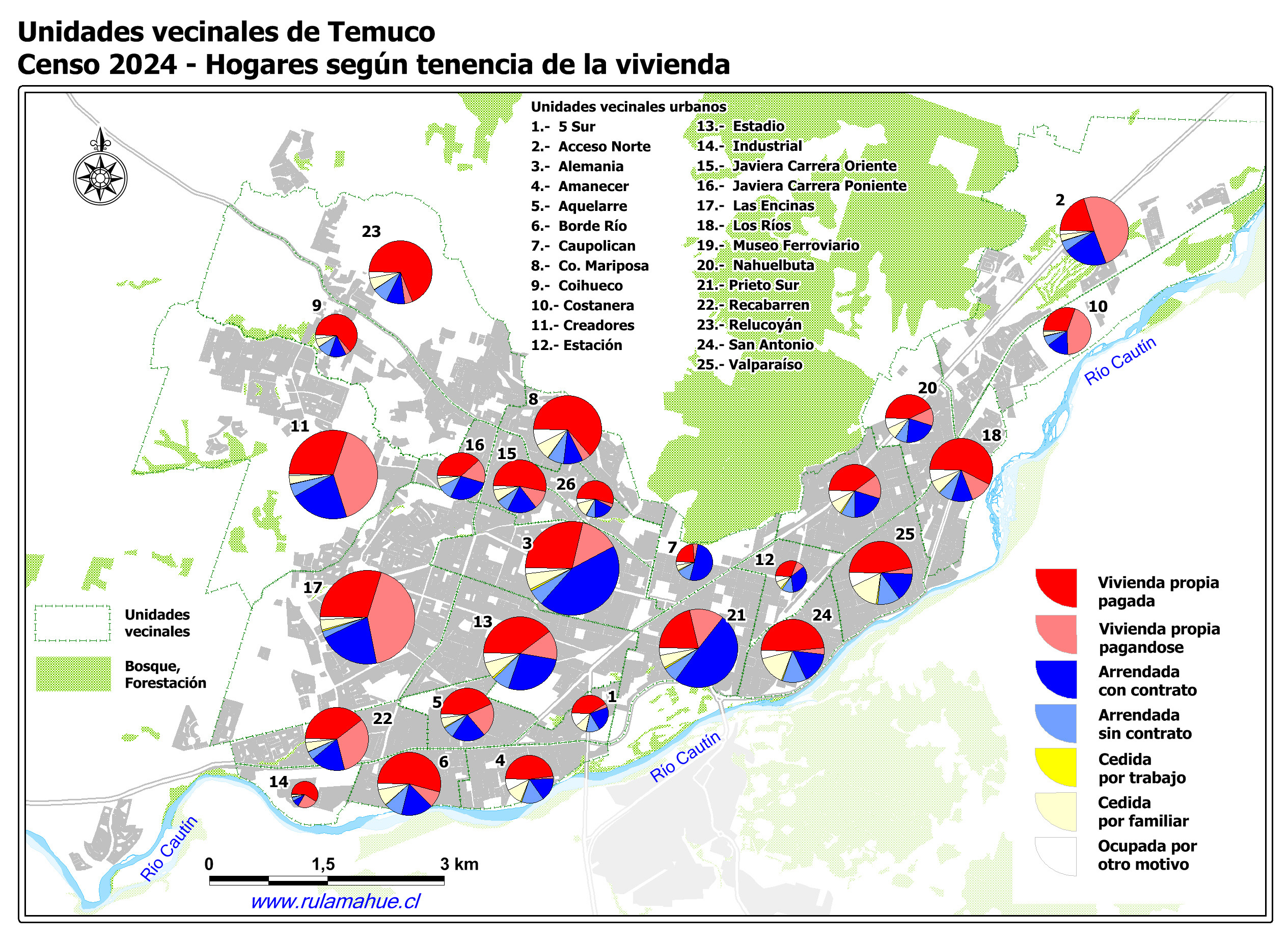 Unidades vecinales de Temuco, Hogares según tenencia de la vivienda..