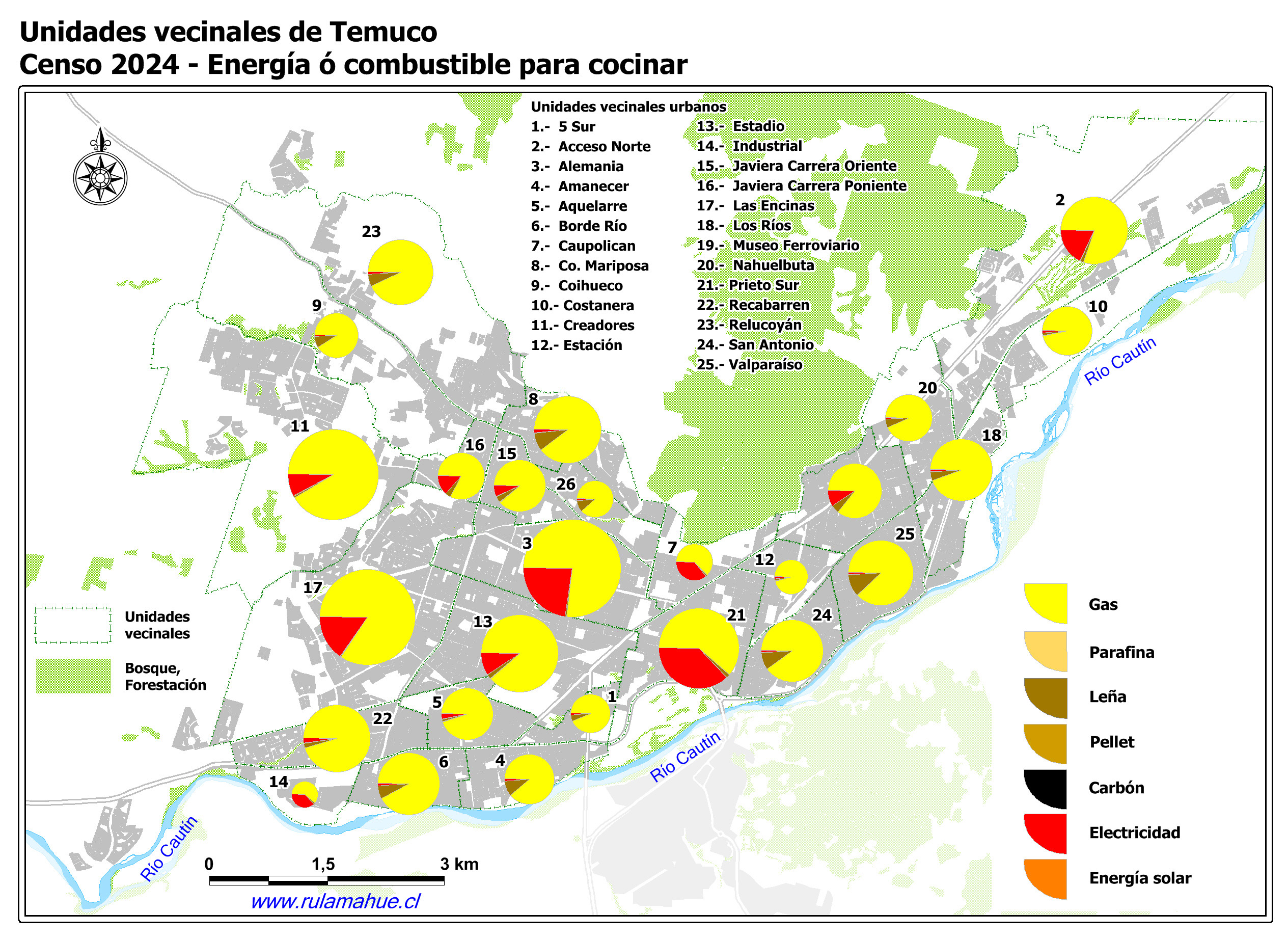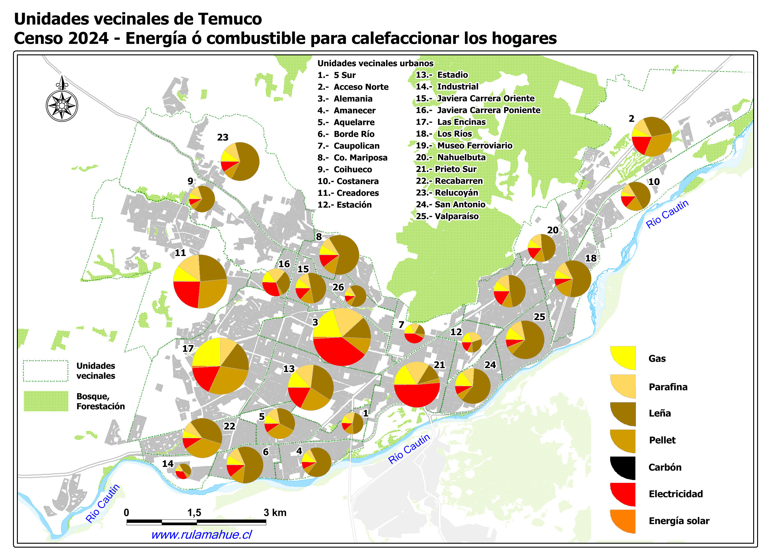 Unidades vecinales de Temuco, Energía o combustible para calefaccionar los hogares.