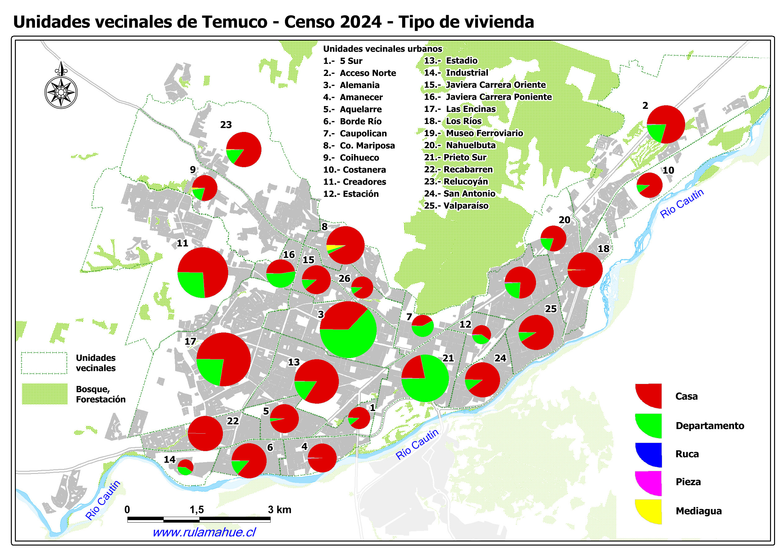 Unidades vecinales de Temuco, Tipo de vivienda.