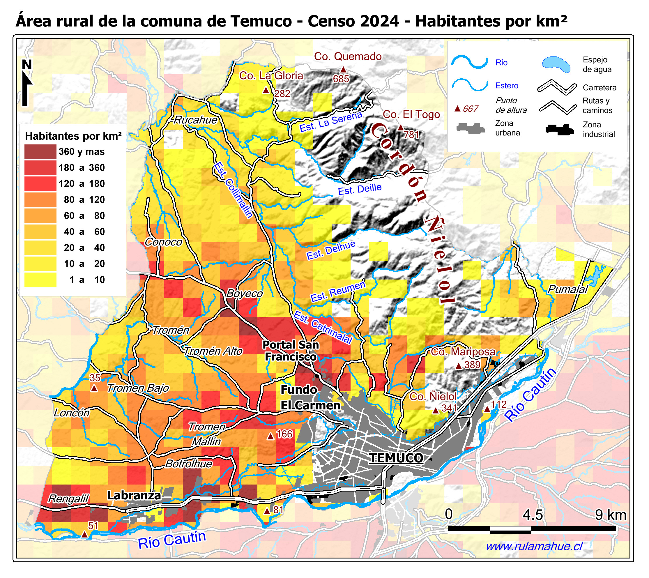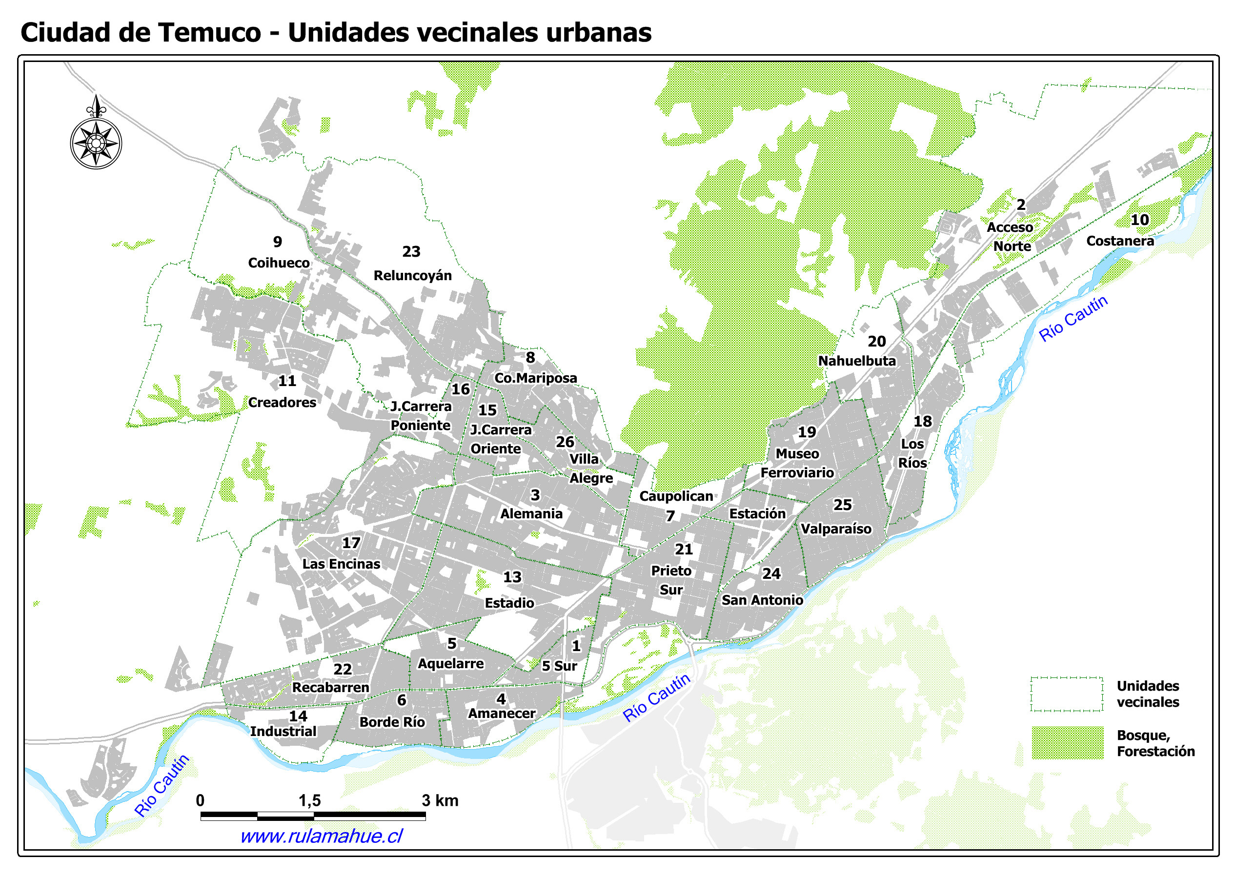Unidades vecinales de Temuco, Densidad poblacional por manzana censal.
