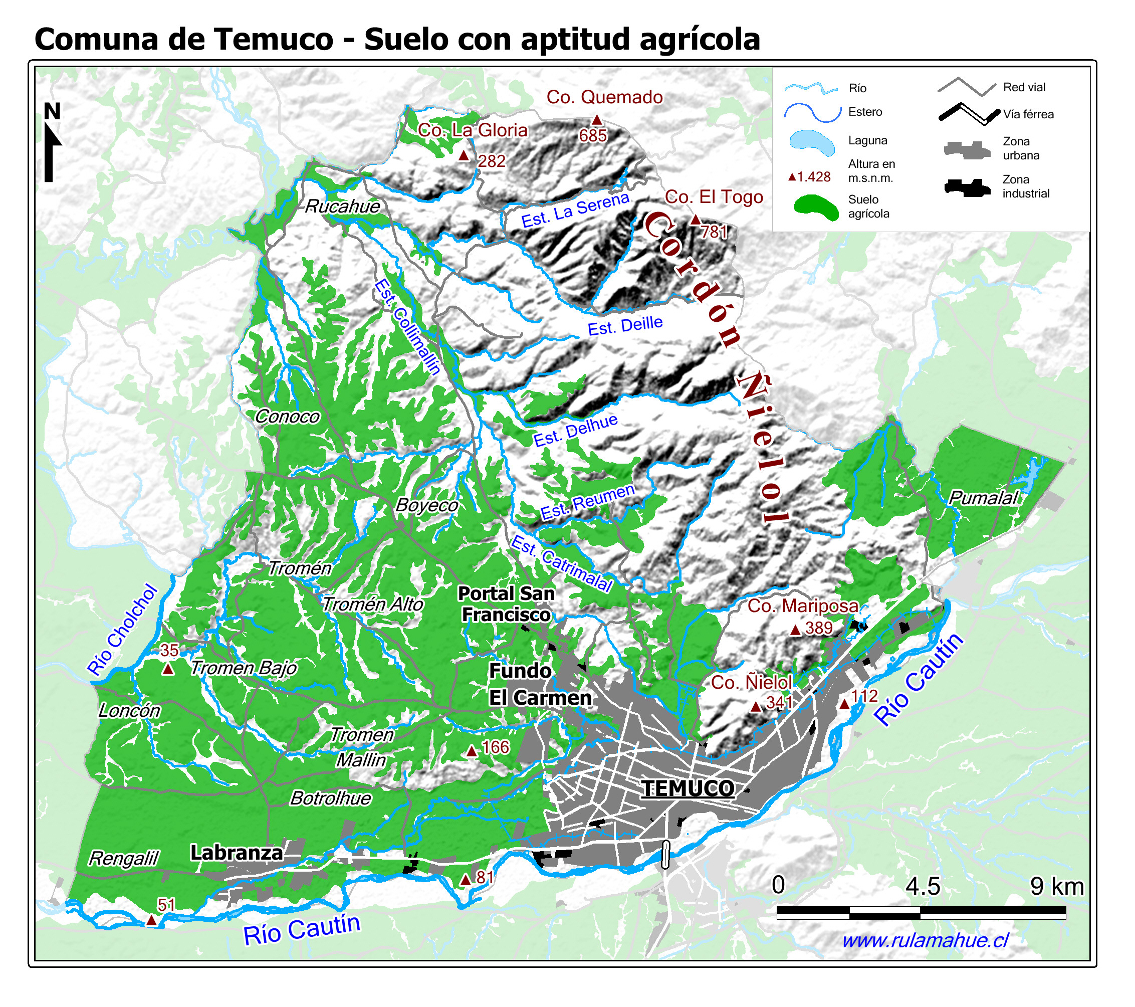 Mapa de la distribución de los suelos con aptitud agrícola según CIREN.