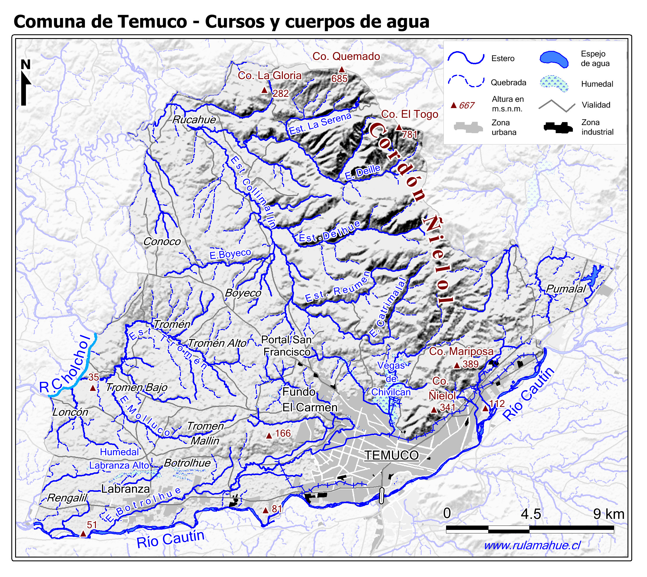 Mapa de las cuencas hidrográficas según información de la Dirección General de Aguas del Ministerio de Obras Públicas.