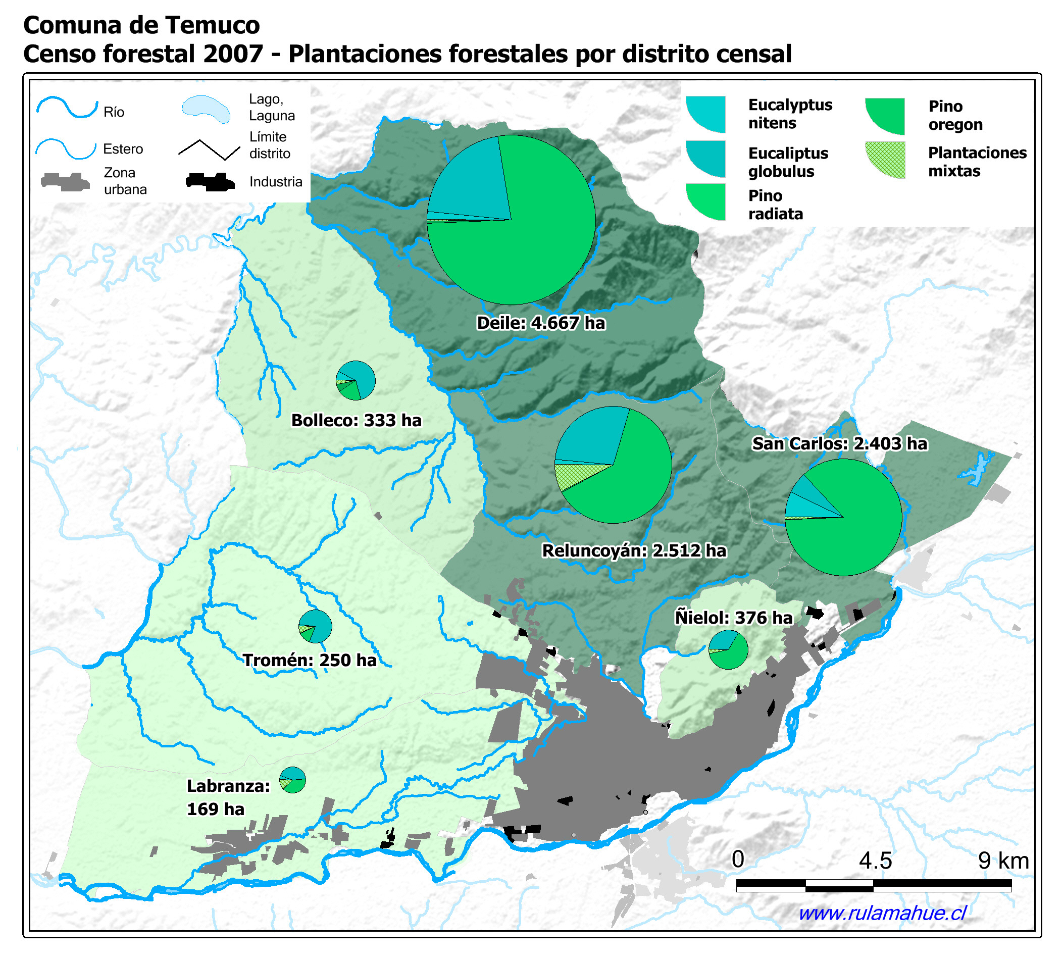 Censo agropecuario y forestal 2007. Plantaciones forestales por distrito censal.