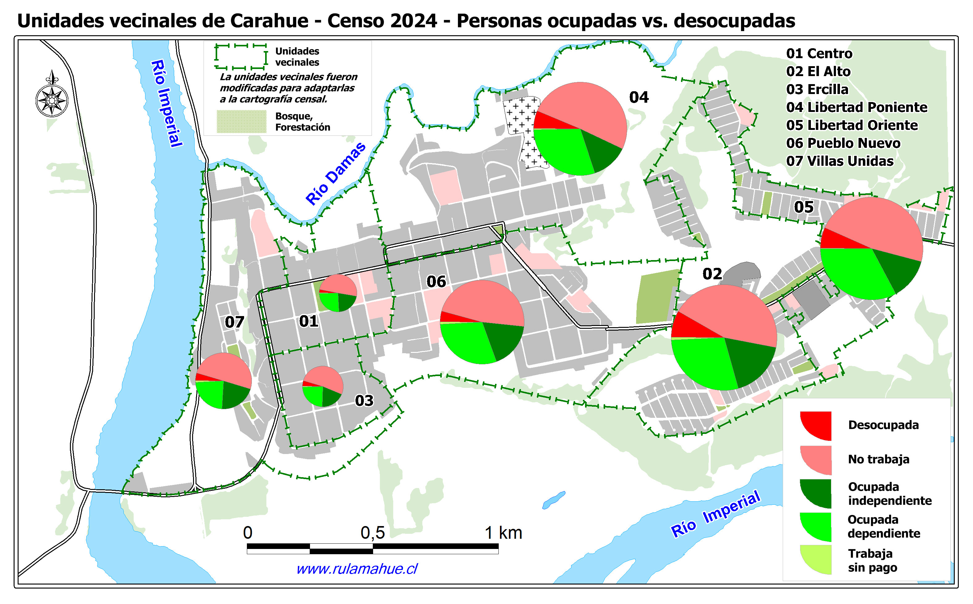 Unidades vecinales urbanas de Carahue, Personas ocupadas versus desocupadas..