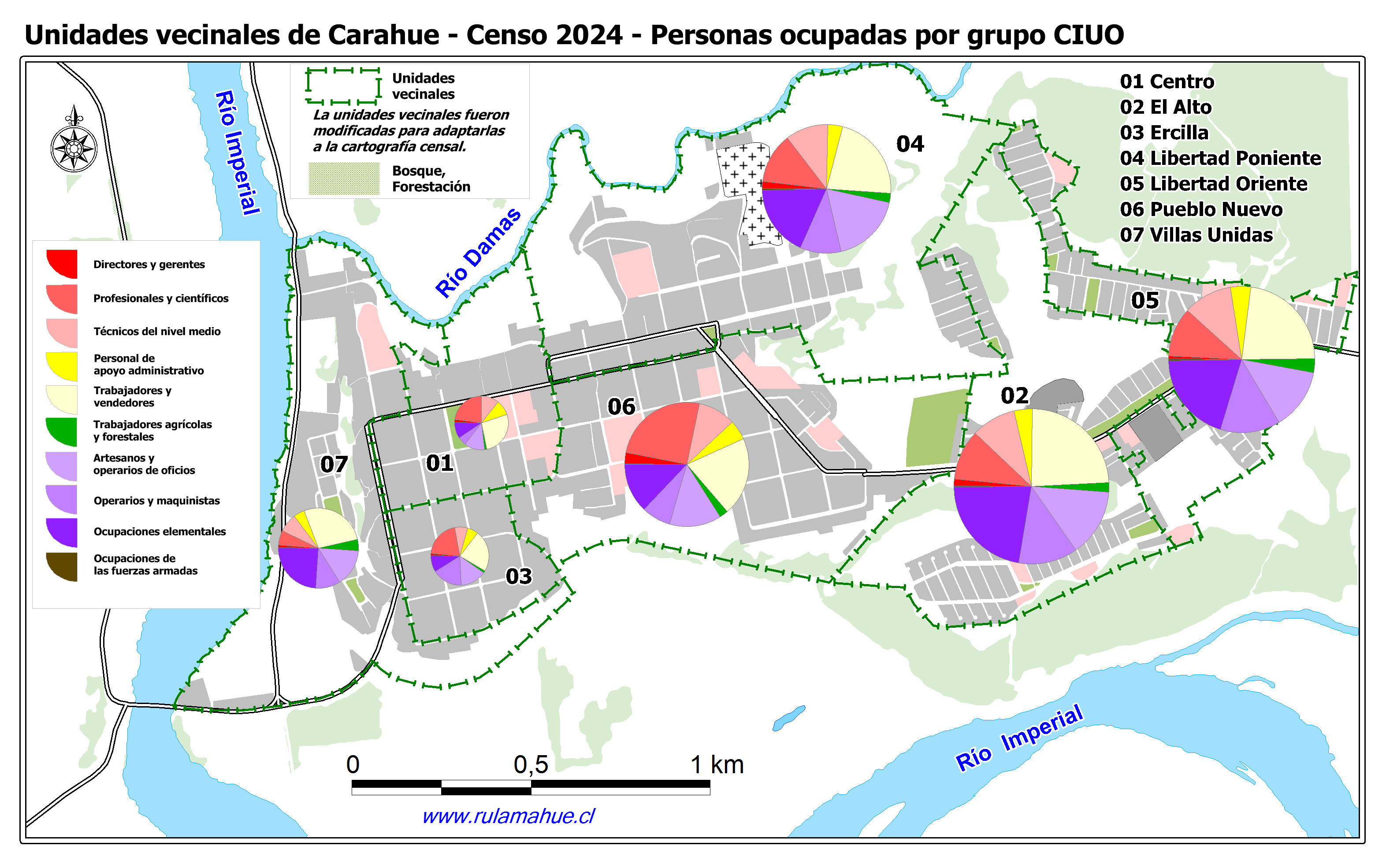 Unidades vecinales urbanas de Carahue, Personas ocupadas por grupo CIUO.
