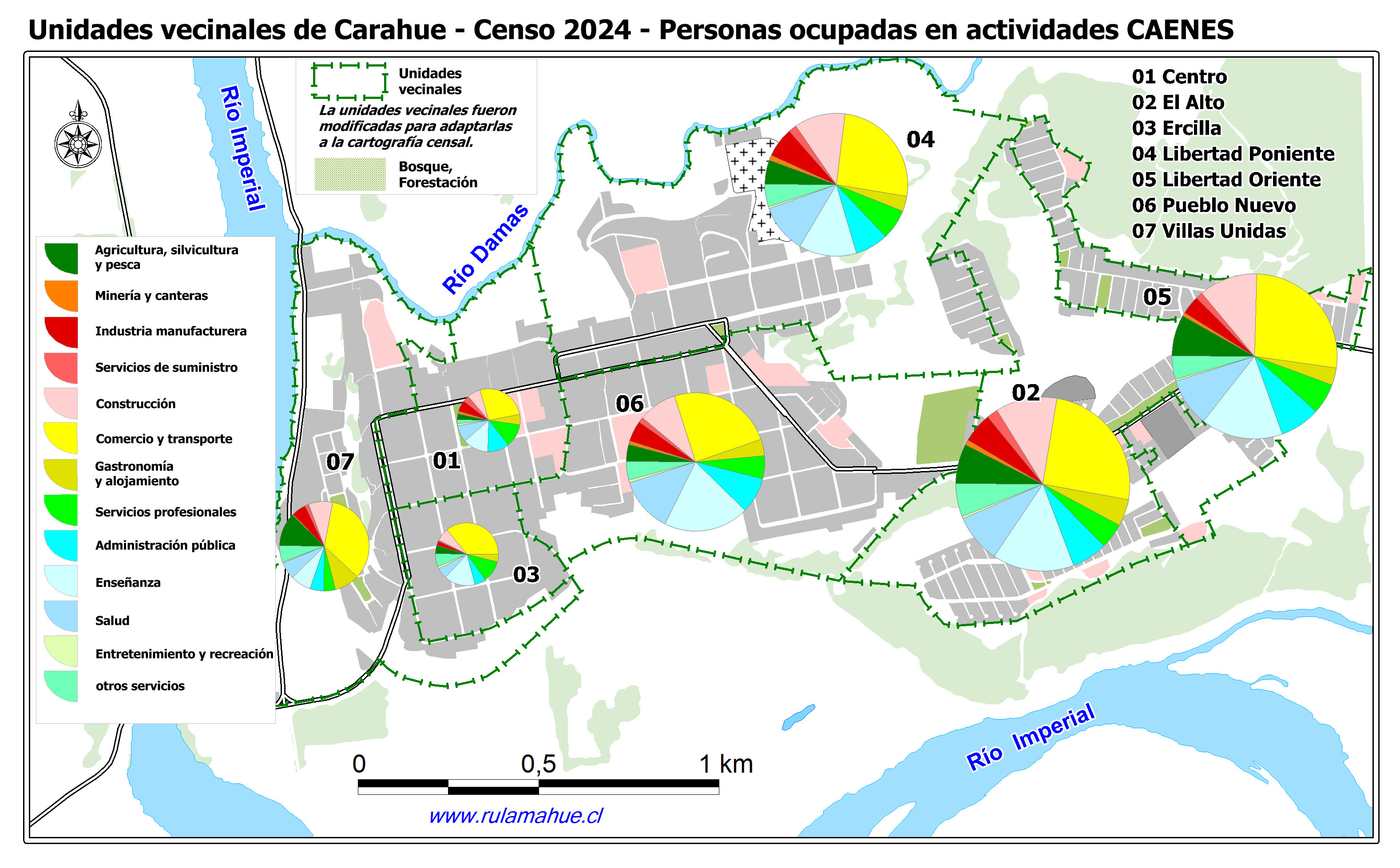 Unidades vecinales urbanas de Carahue, Personas ocupadas por grupo CAENES.