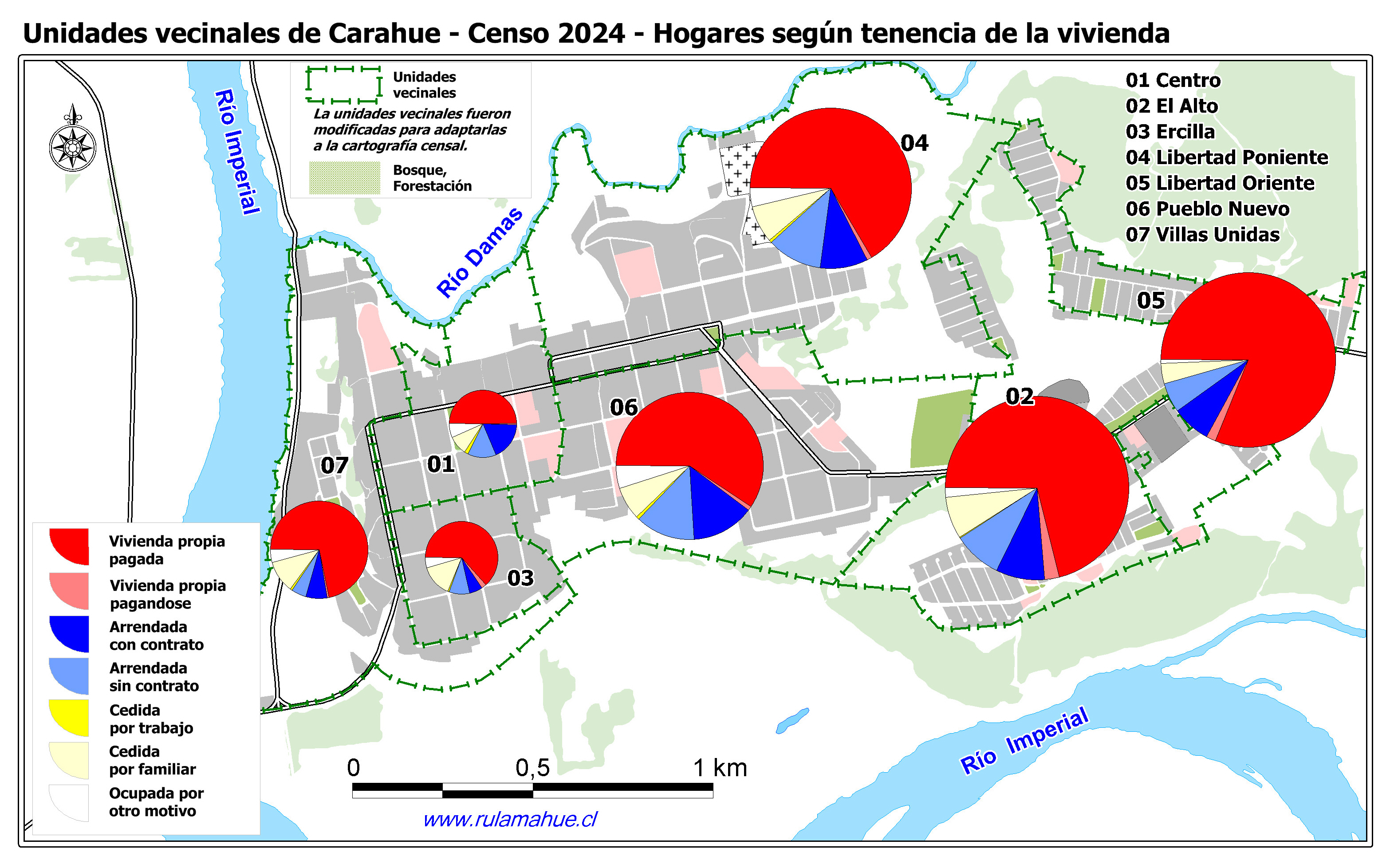 Unidades vecinales urbanas de Carahue, Hogares según tenencia de la vivienda..
