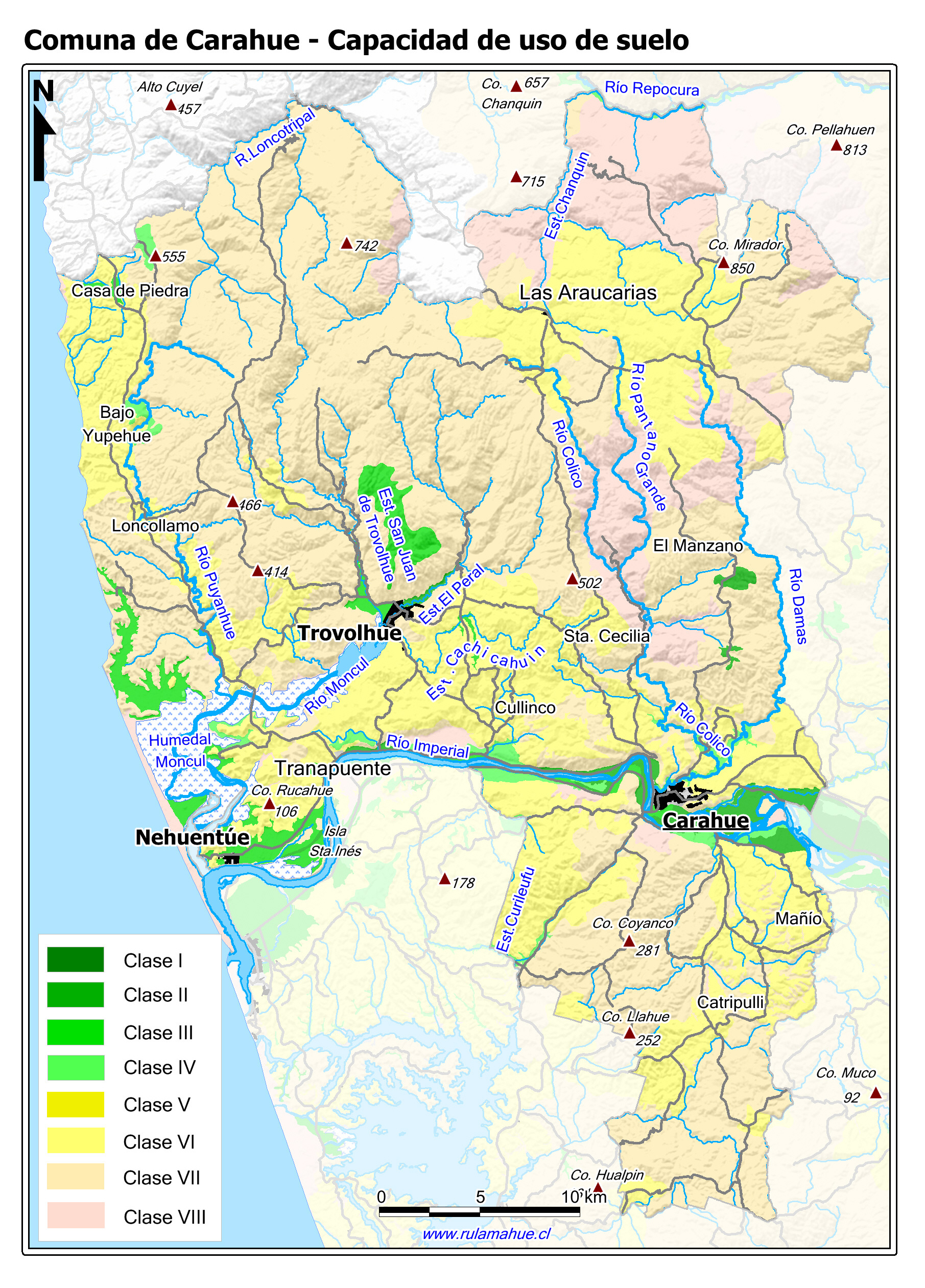 Mapa de la distribución de la capacidad de uso de los suelos CIREN.