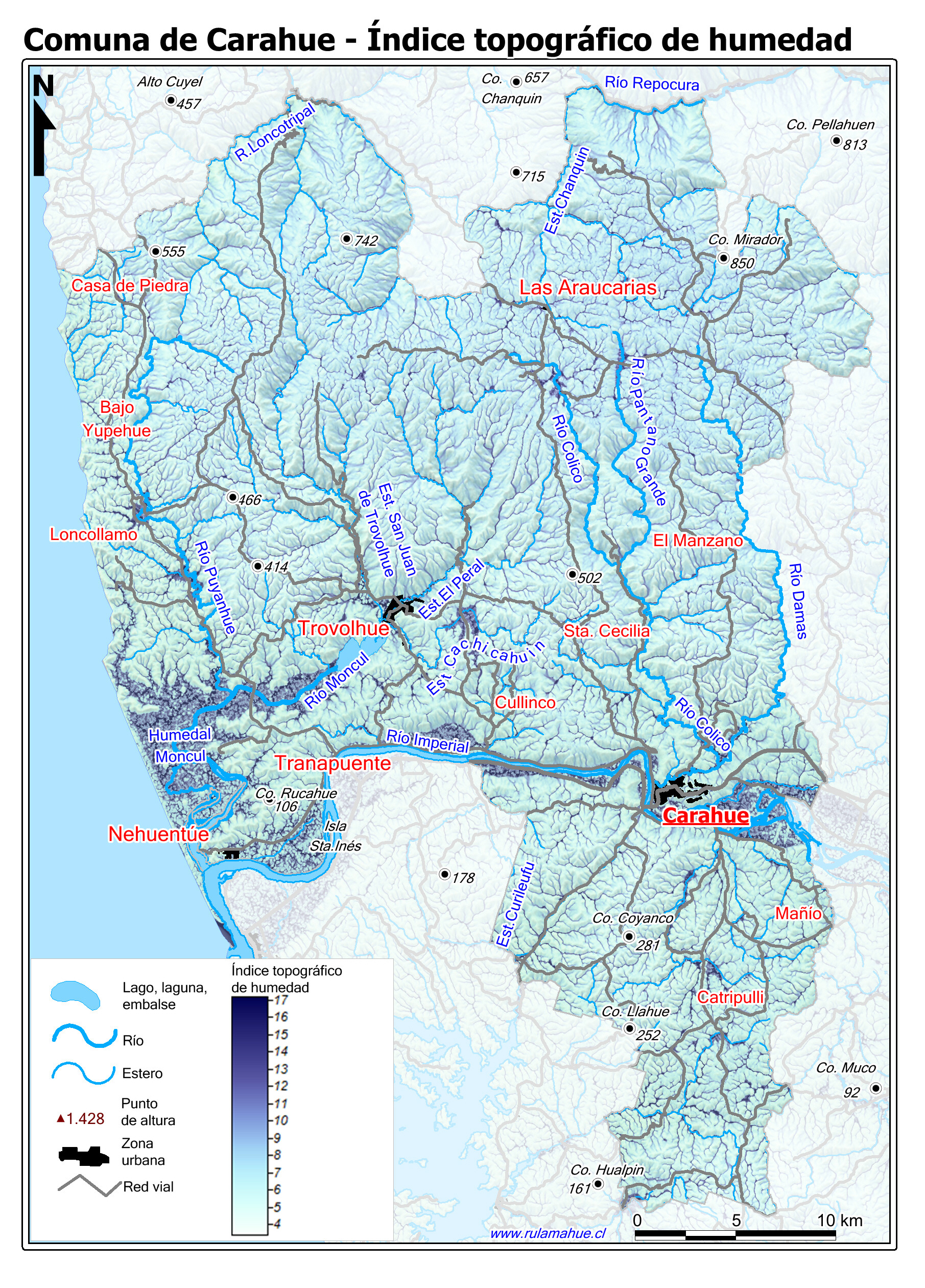 Mapa del Índice topográfico de humedad.