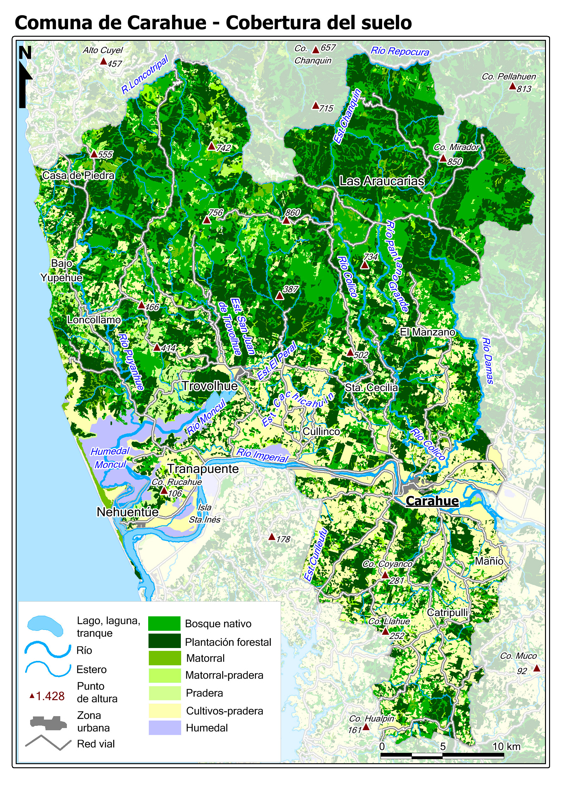 Mapa de la cobertura del suelo según el Catastro de Recursos Vegetacionales del año 2017 (fuente: sit.conaf.cl).