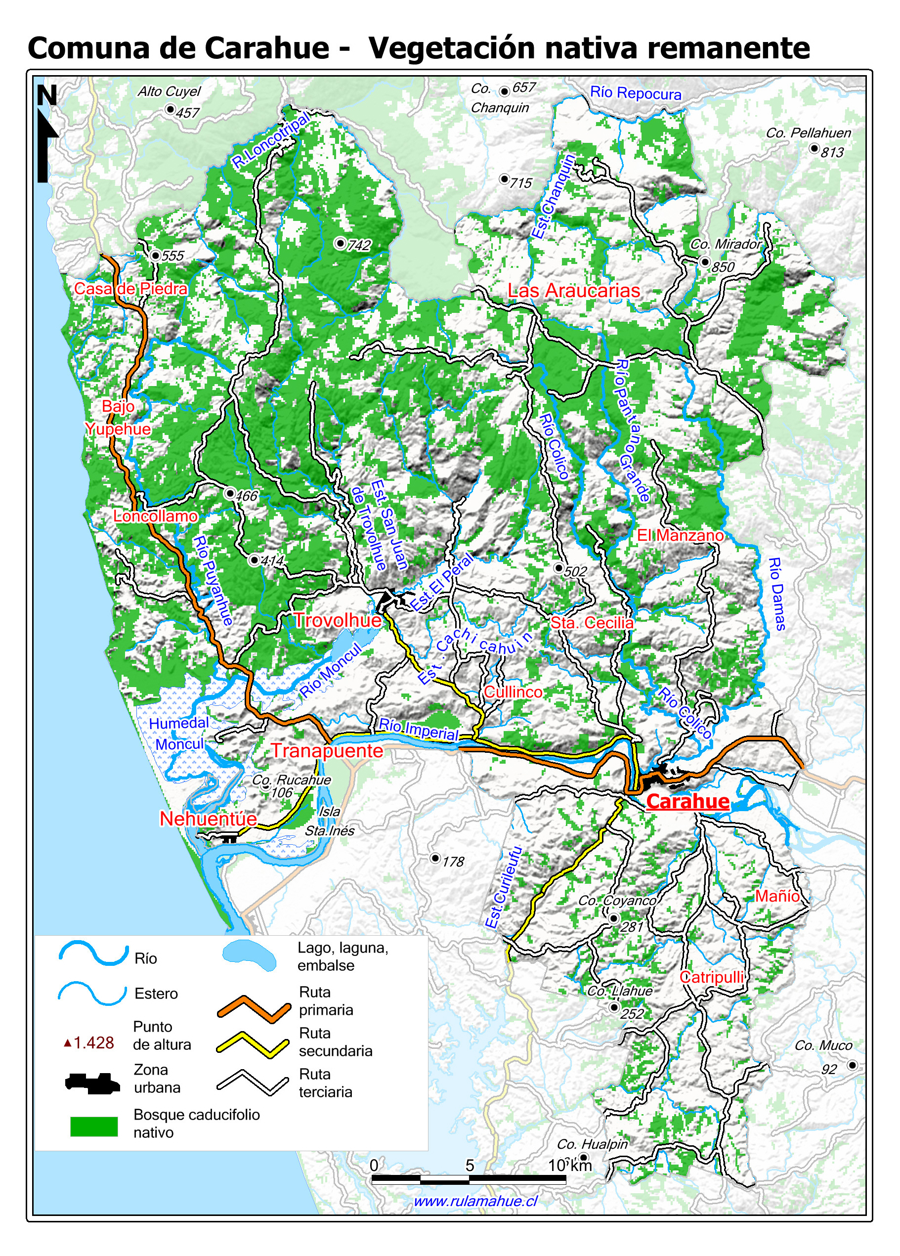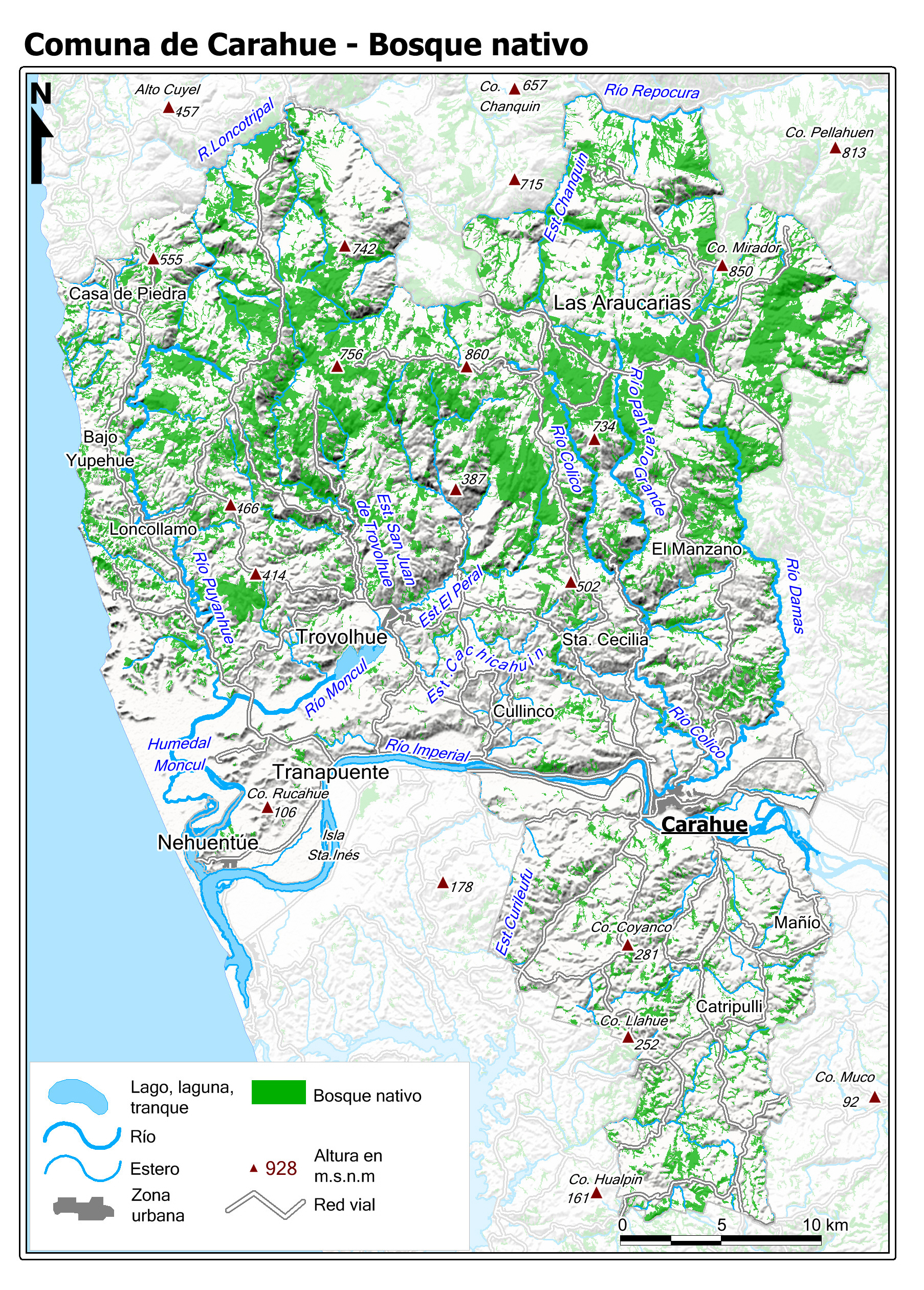 Mapa de la cobertura de bosque nativo según el Catastro de Recursos Vegetacionales del año 2017 (fuente: sit.conaf.cl).