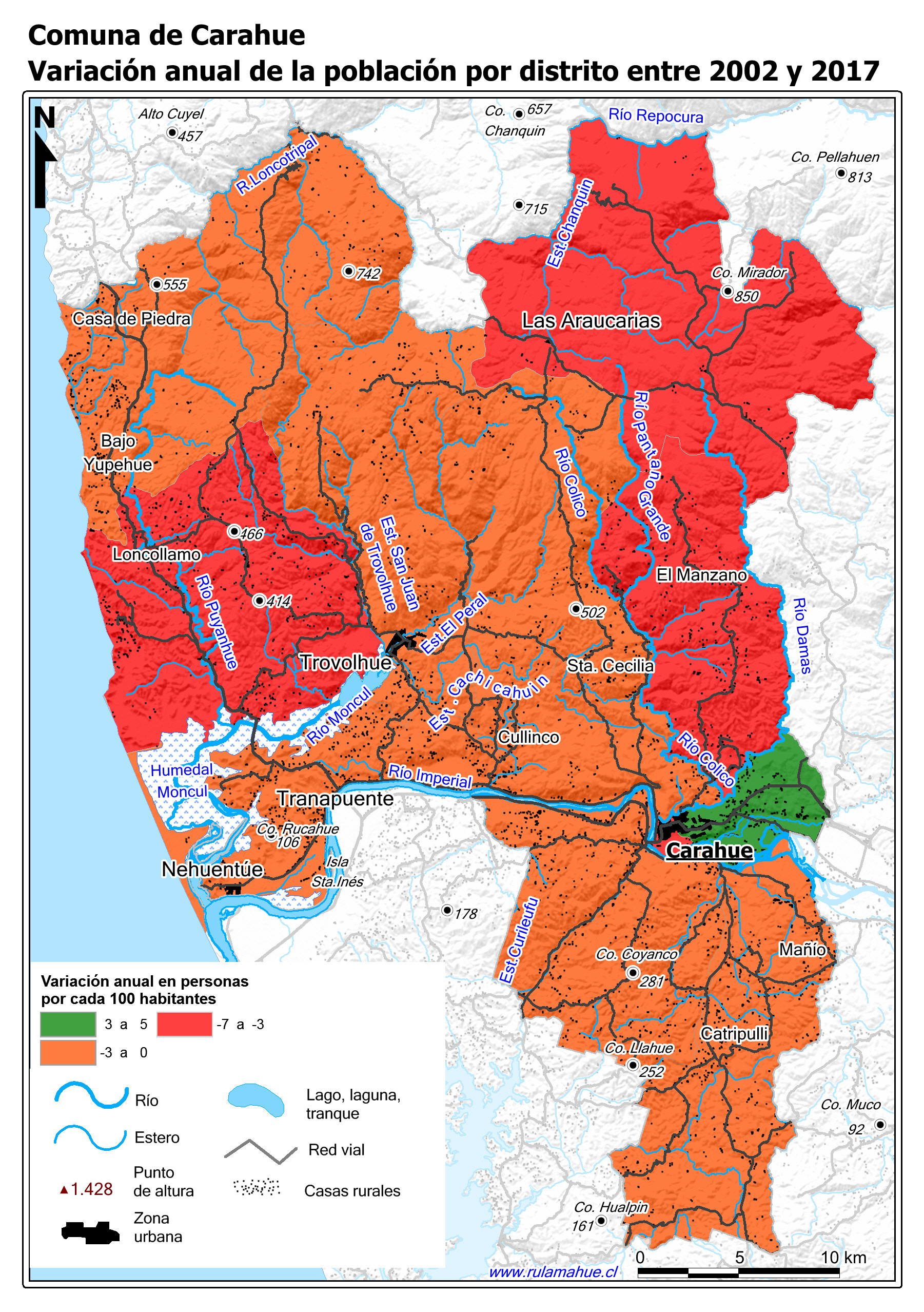 Mapa con la variación anual de la población entre los Censos Nacionales de Población y Vivienda de 2002 y 2017, expresado en personas por 100 habitantes.
