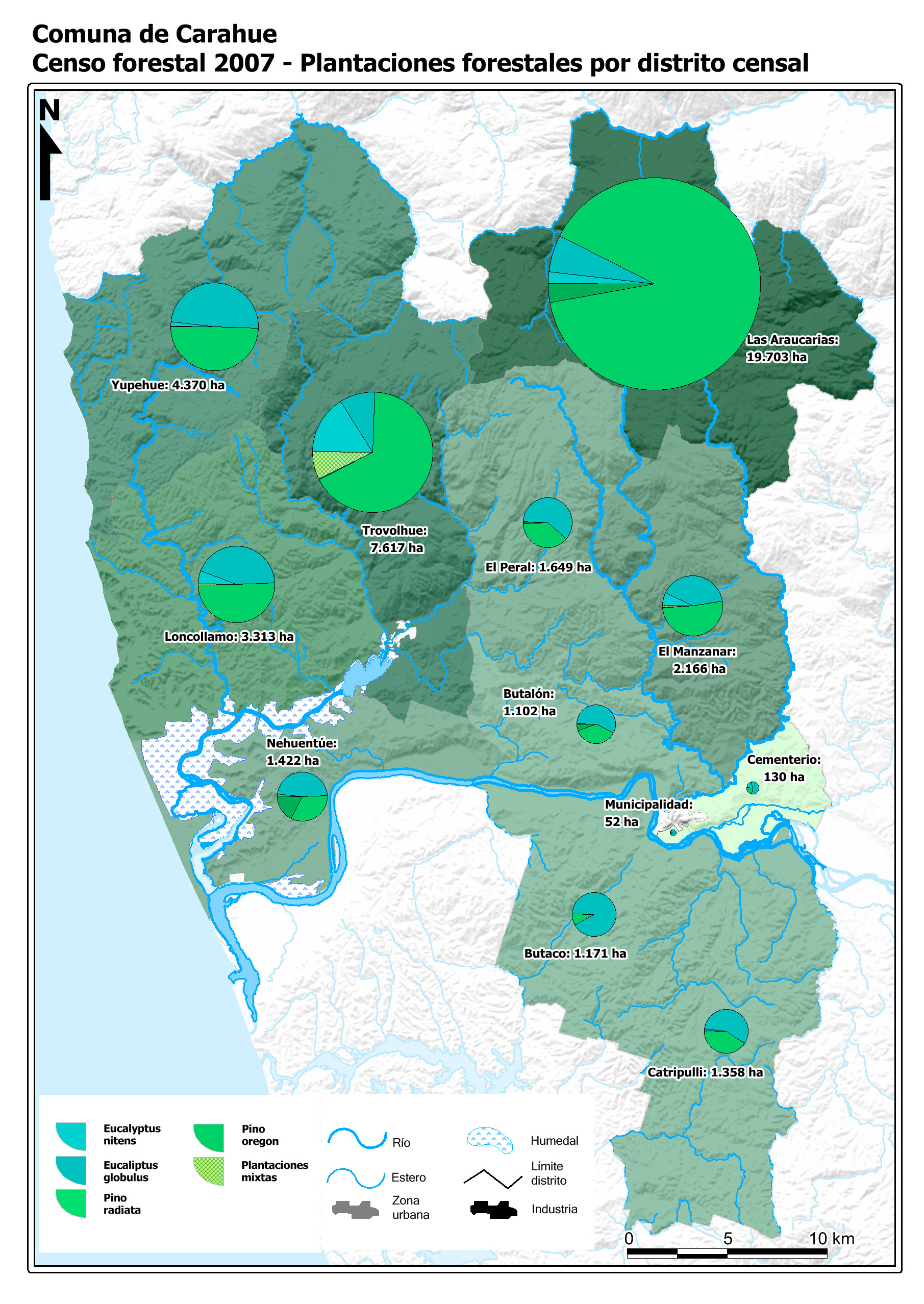 Censo agropecuario y forestal 2007. Plantaciones forestales por distrito censal.