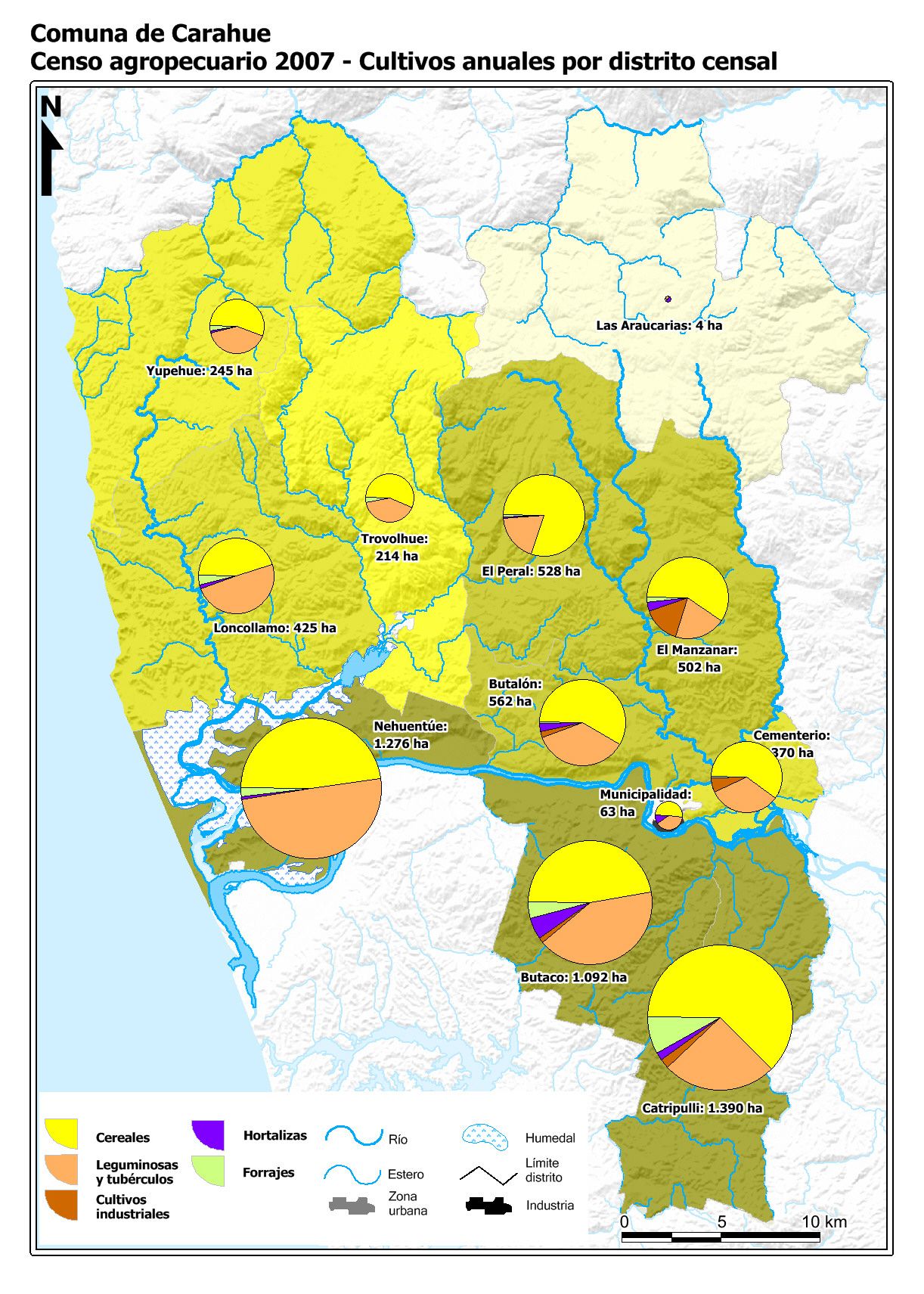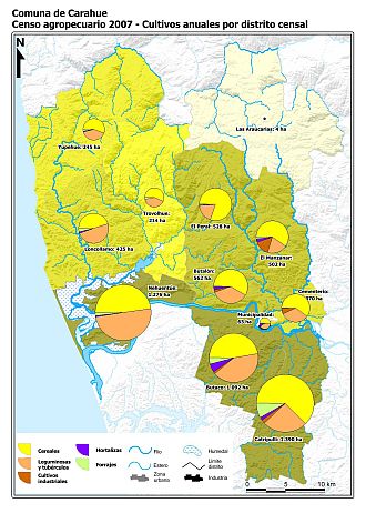 Los diferentes tipos de cultivos anuales por distrito censal de acuerdo información proporcionada por ODEPA.