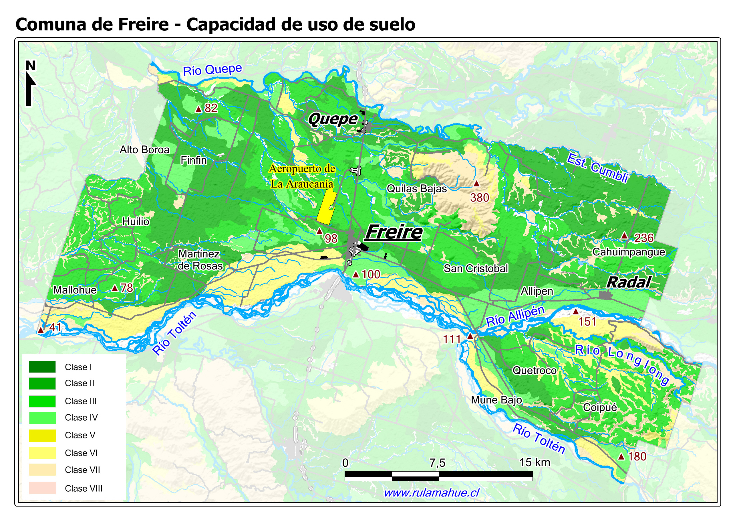 Mapa de la distribución de la capacidad de uso de los suelos CIREN.