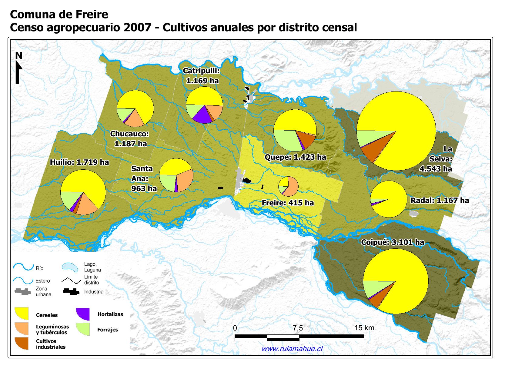 Los diferentes tipos de cultivos anuales por distrito censal de acuerdo información proporcionada por ODEPA.