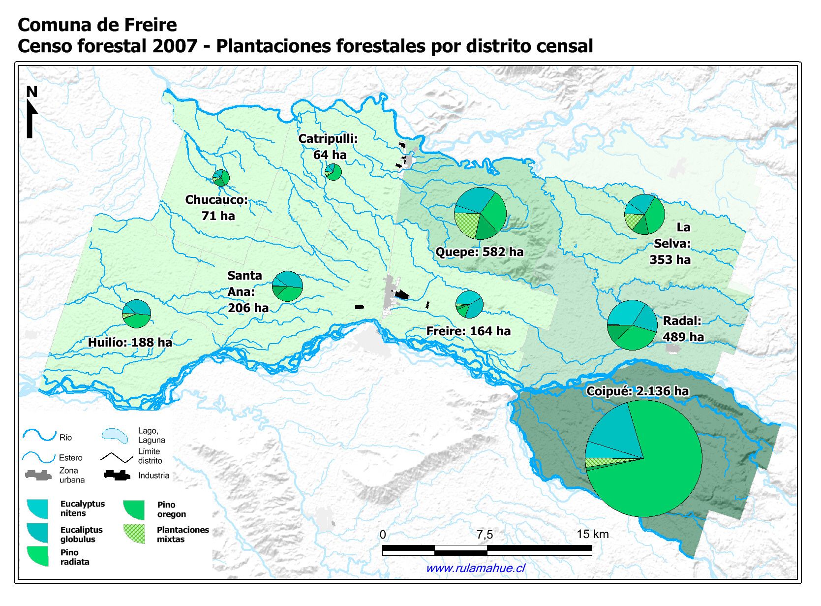 Censo agropecuario y forestal 2007. Plantaciones forestales por distrito censal.