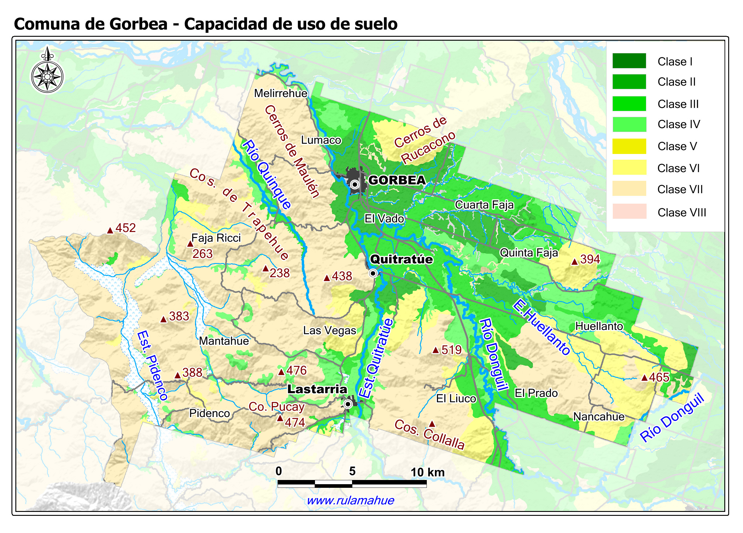 Mapa de la distribución de la capacidad de uso de los suelos CIREN.