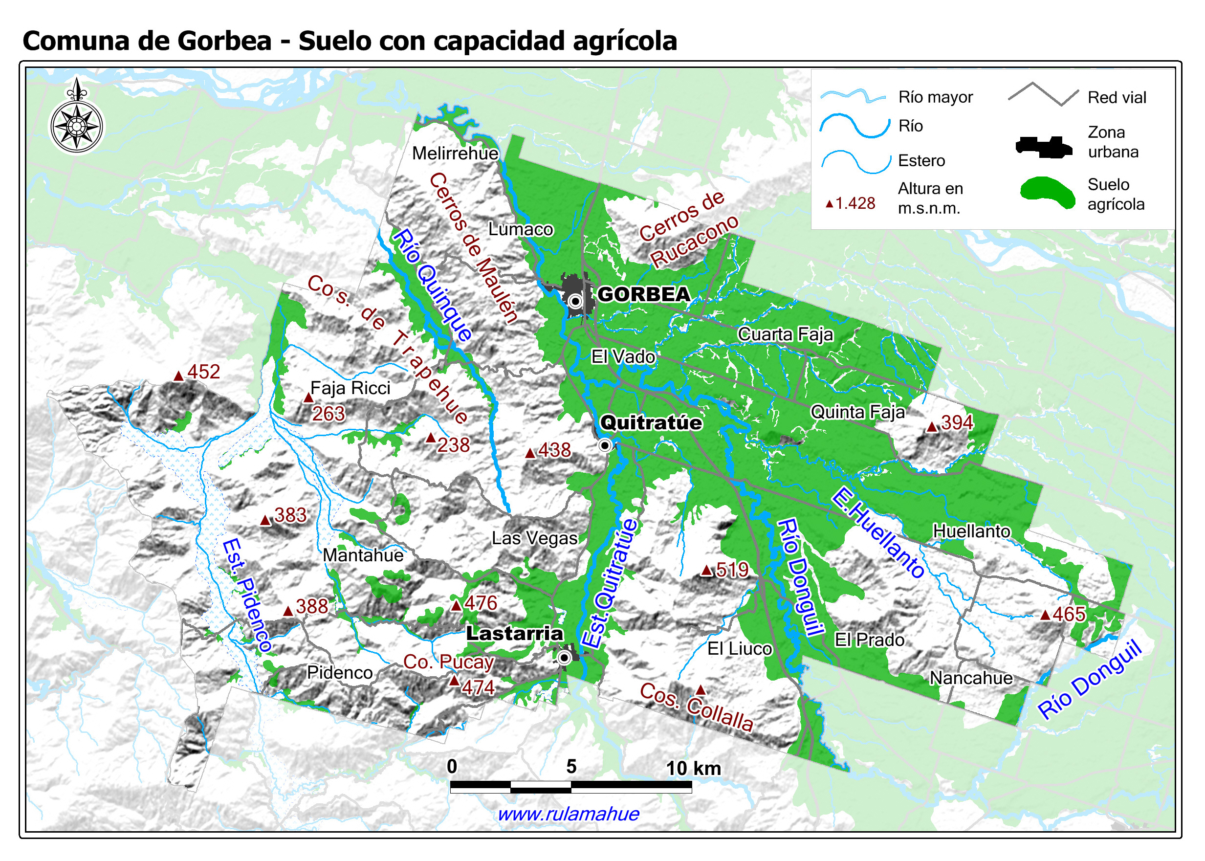 Mapa de la distribución de los suelos con aptitud agrícola según CIREN.