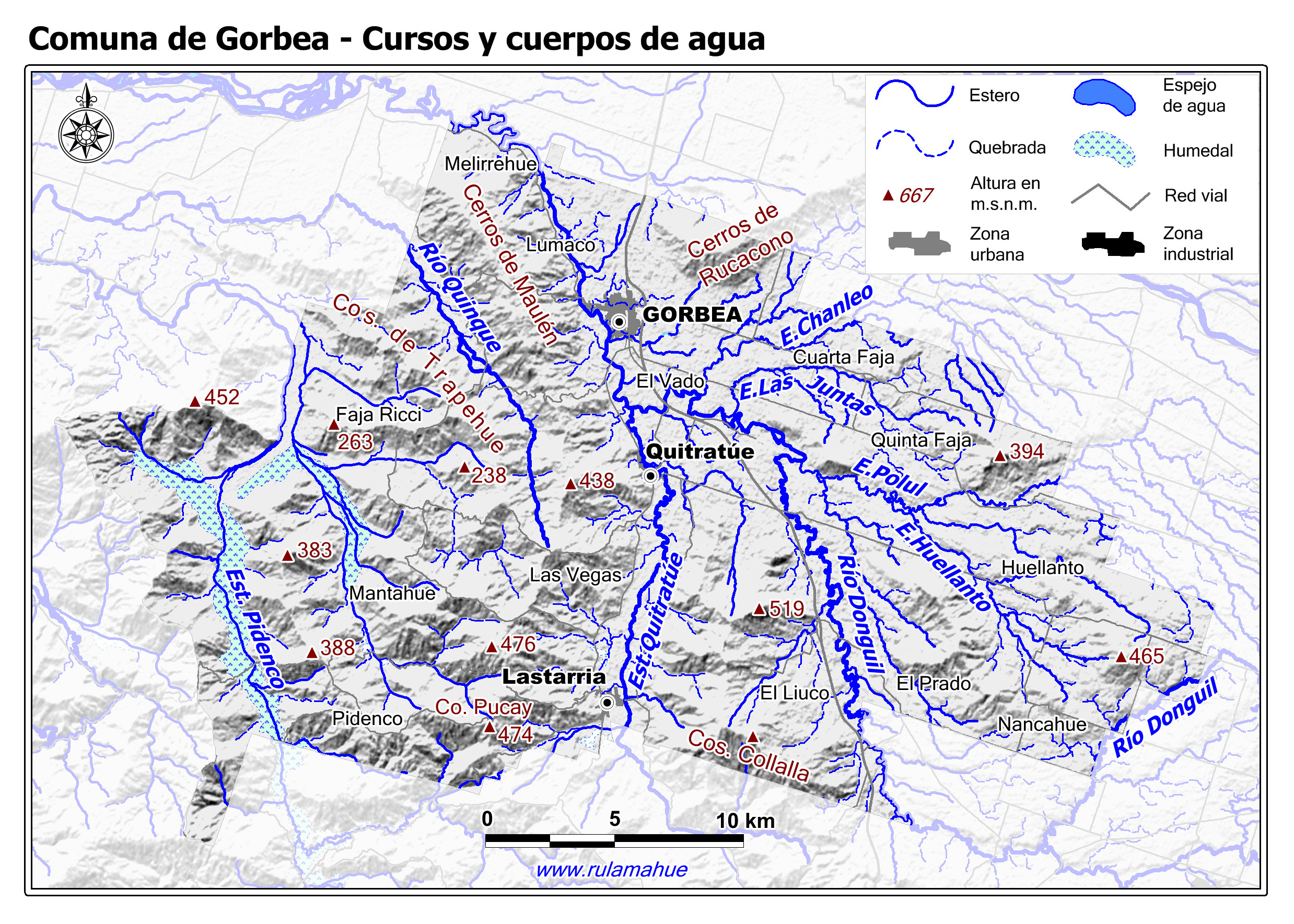 Mapa de las cuencas hidrográficas según información de la Dirección General de Aguas del Ministerio de Obras Públicas.