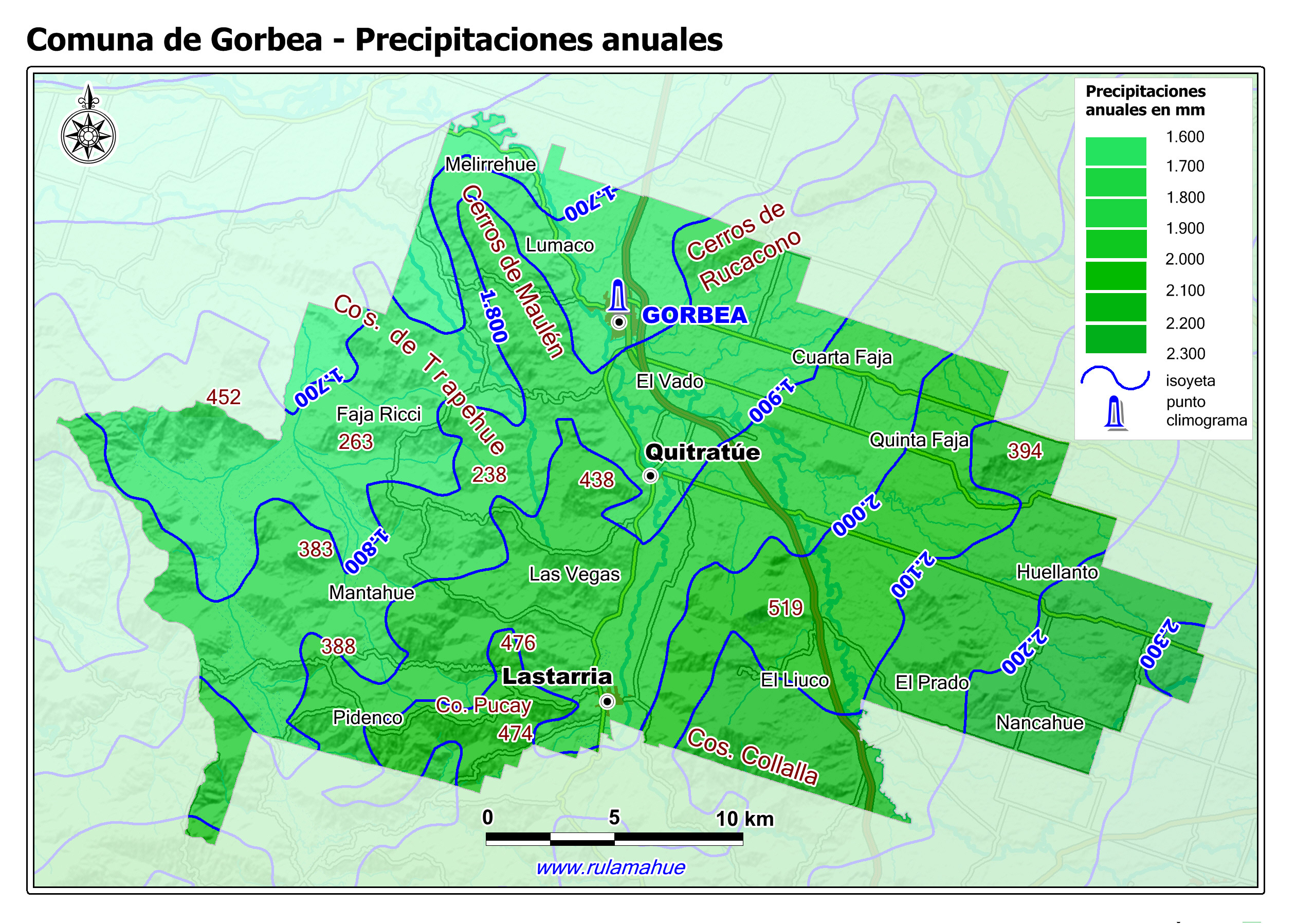 Mapa de la distribución de las precipitaciones anuales con datos del sitio web Worldclim.