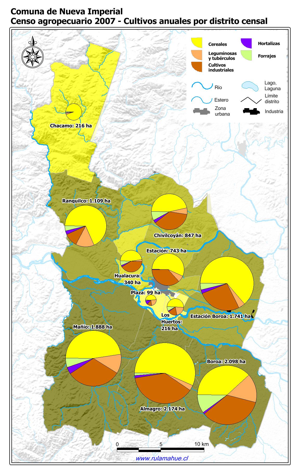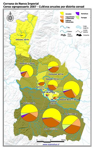 Los diferentes tipos de cultivos anuales por distrito censal de acuerdo información proporcionada por ODEPA.