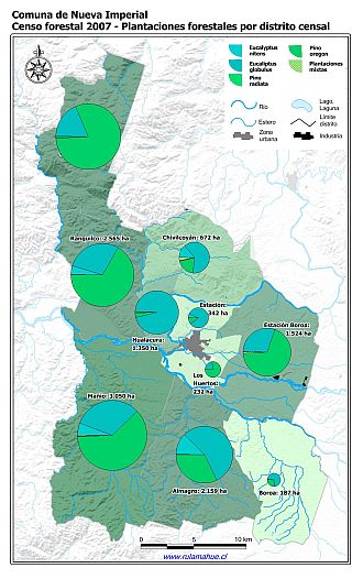 Censo agropecuario y forestal 2007. Plantaciones forestales por distrito censal.