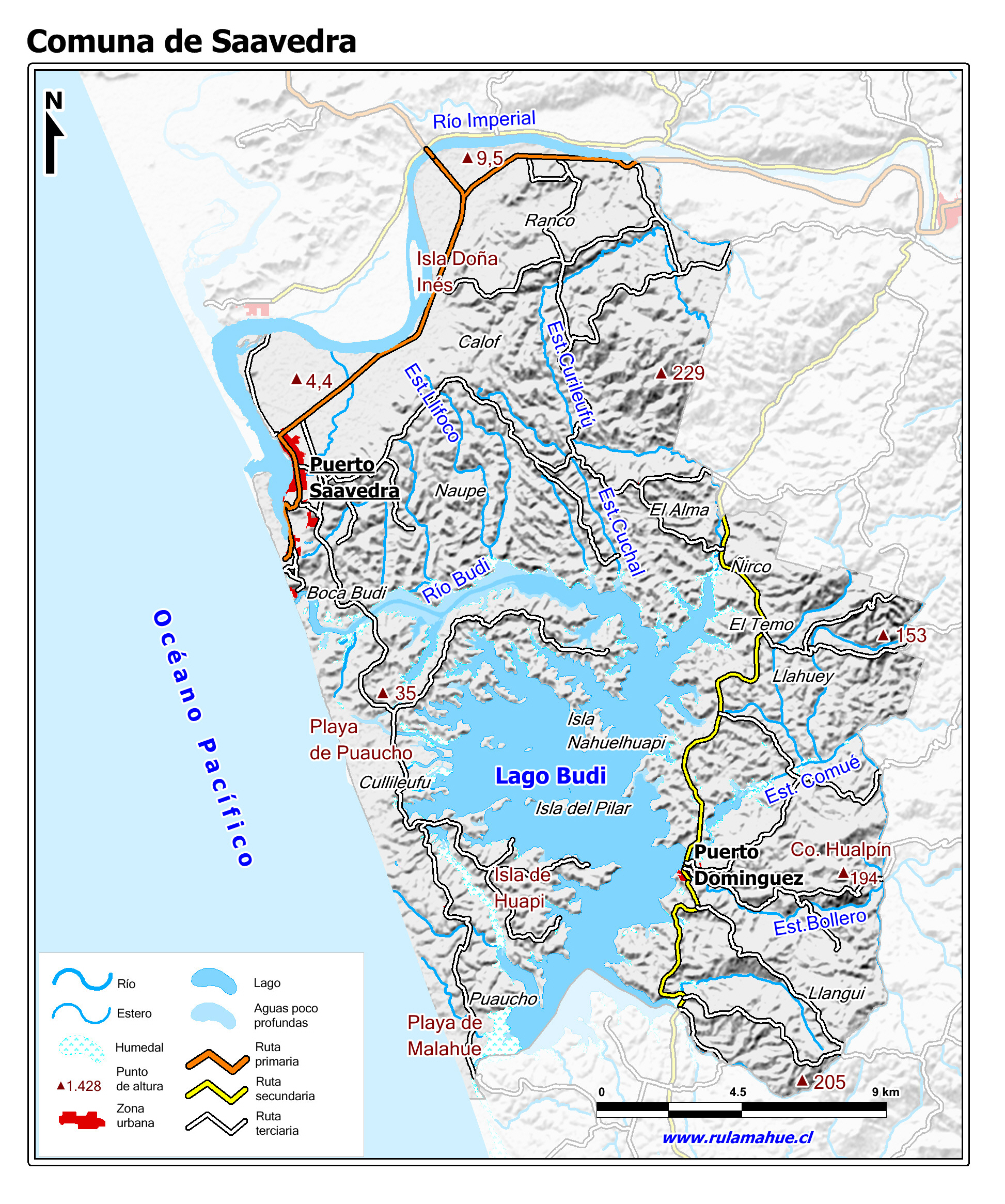 Mapa base de la comuna de 76 x 59 cms compuesto por un mosaico de 9 hojas de tamaño carta.