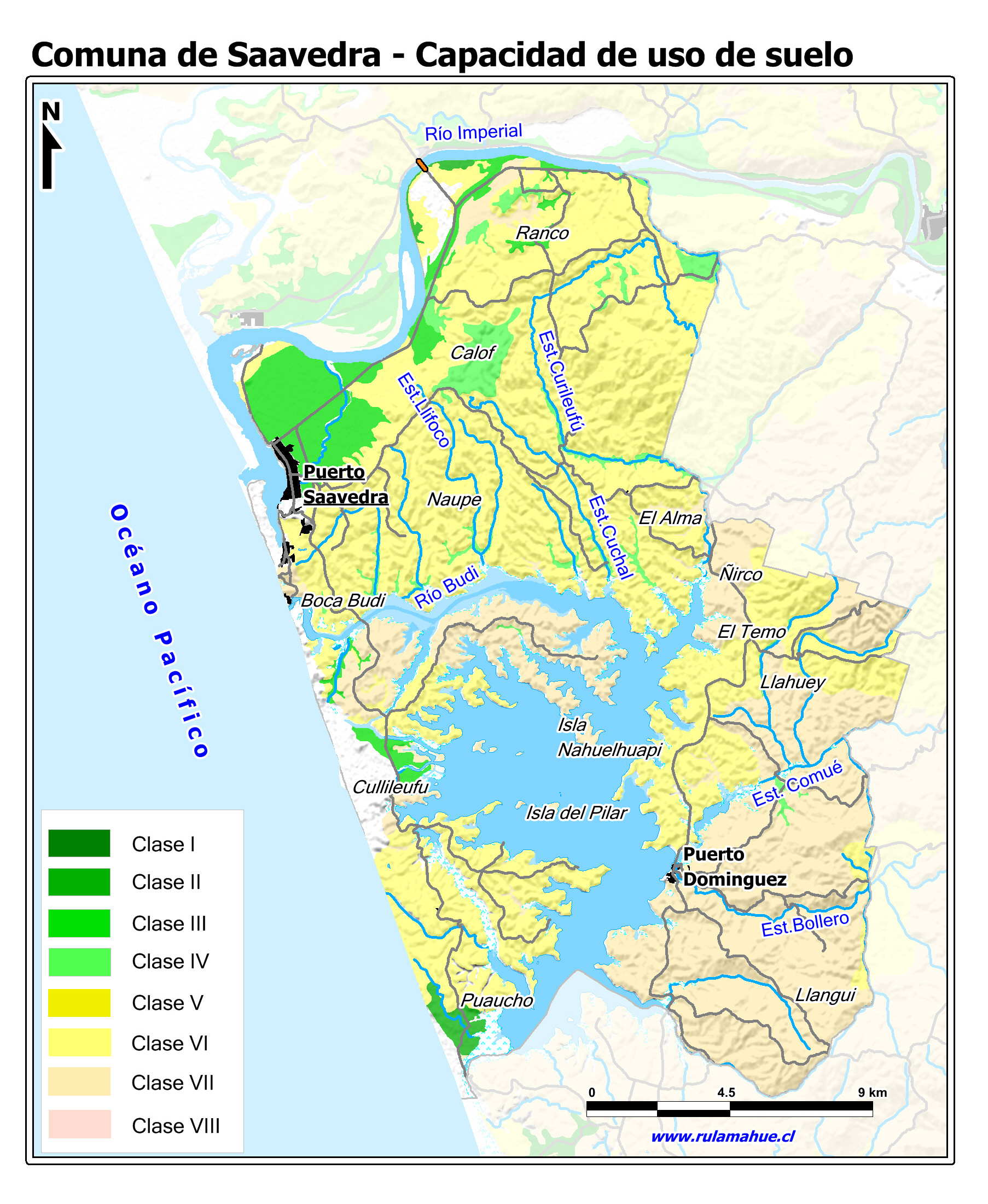 Mapa de la distribución de la capacidad de uso de los suelos CIREN.