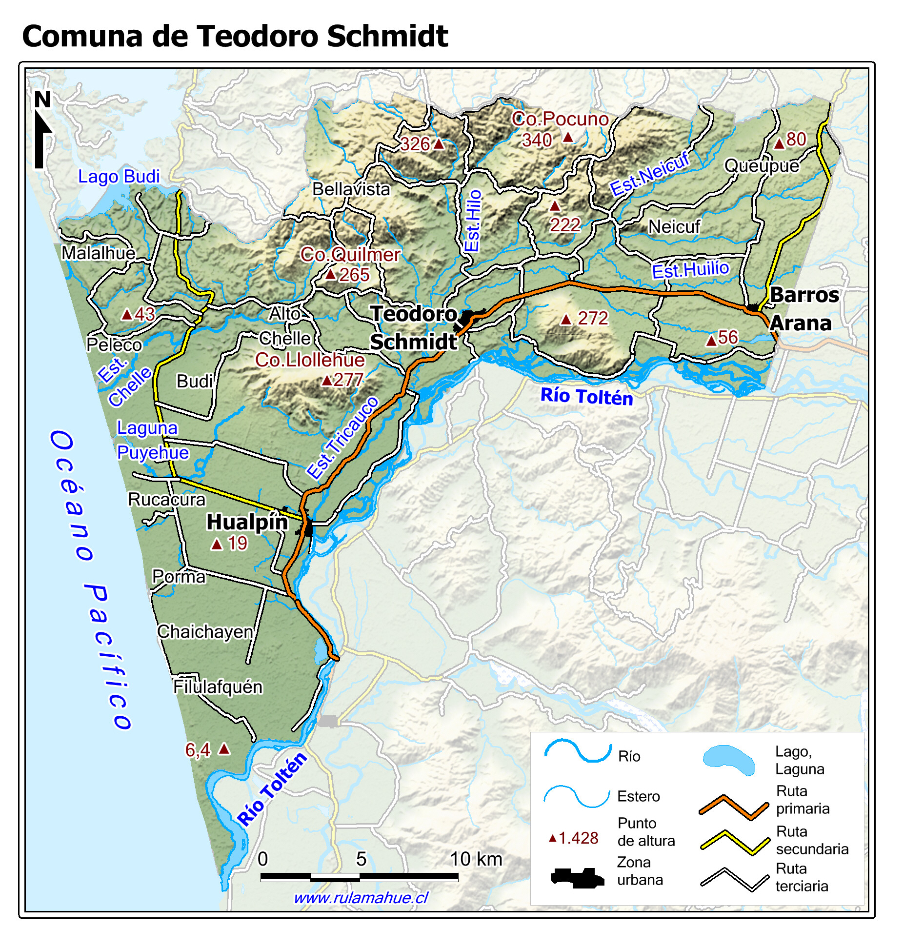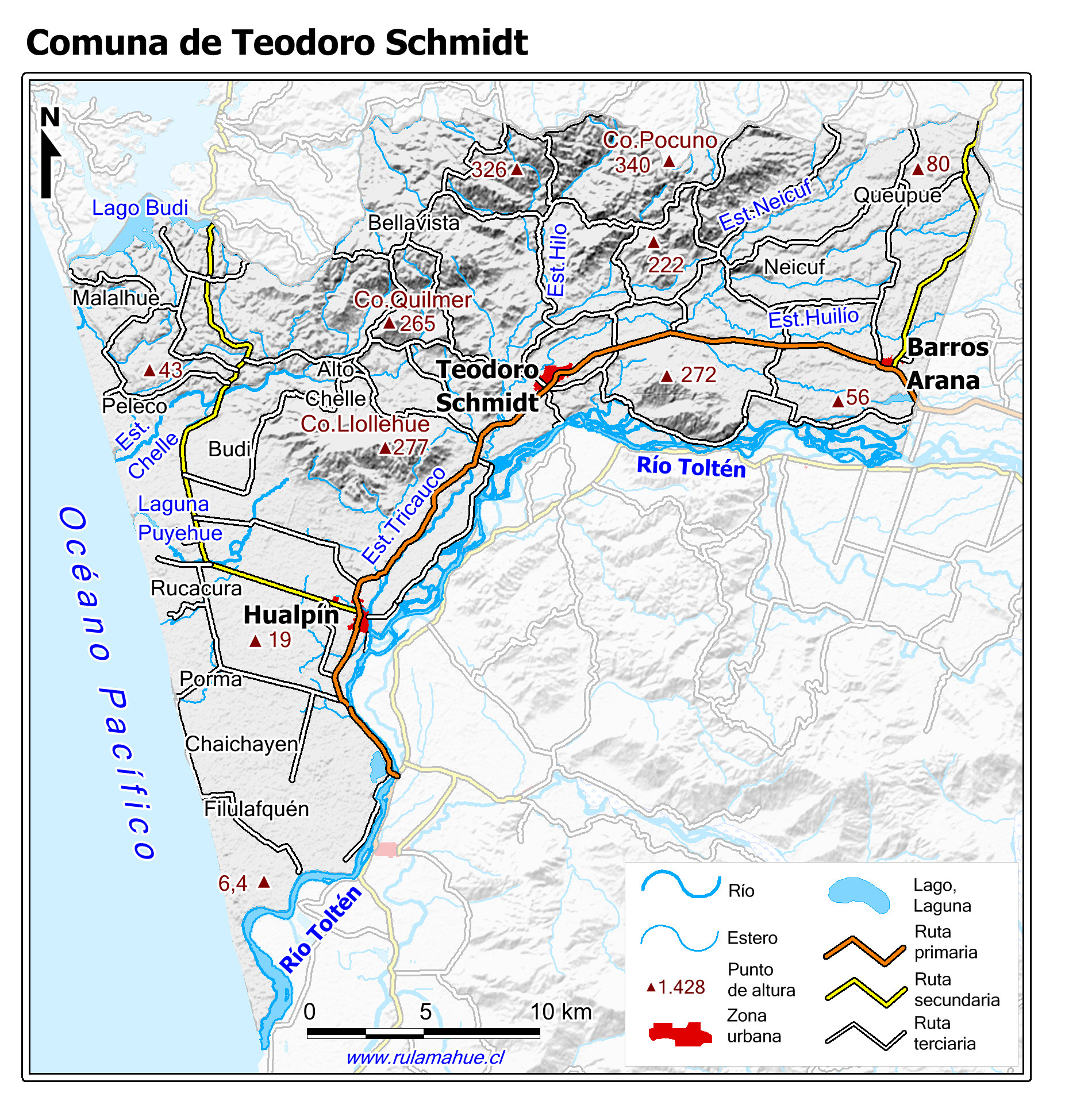 Mapa que muestra la ubicación y expansión de las zonas urbanas y la distribución de las casas rurales.