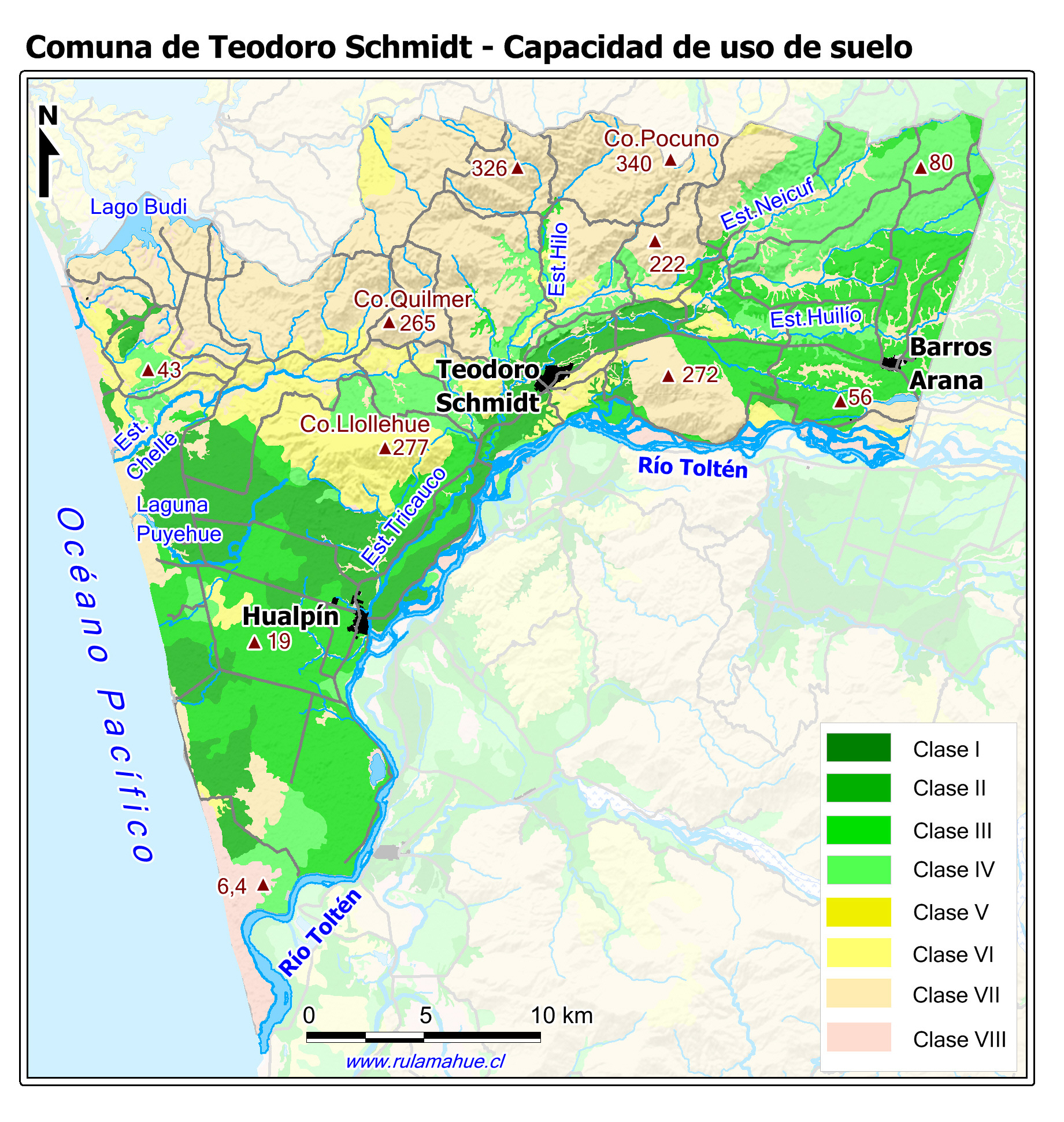 Mapa de la distribución de la capacidad de uso de los suelos CIREN.