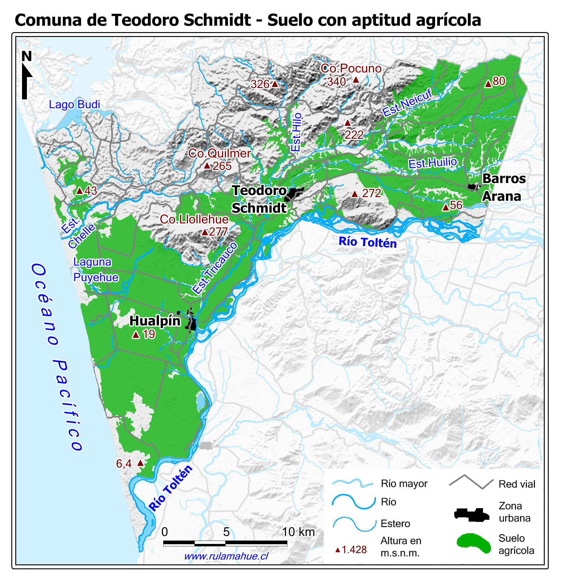 Mapa de la distribución de los suelos con aptitud agrícola según CIREN.