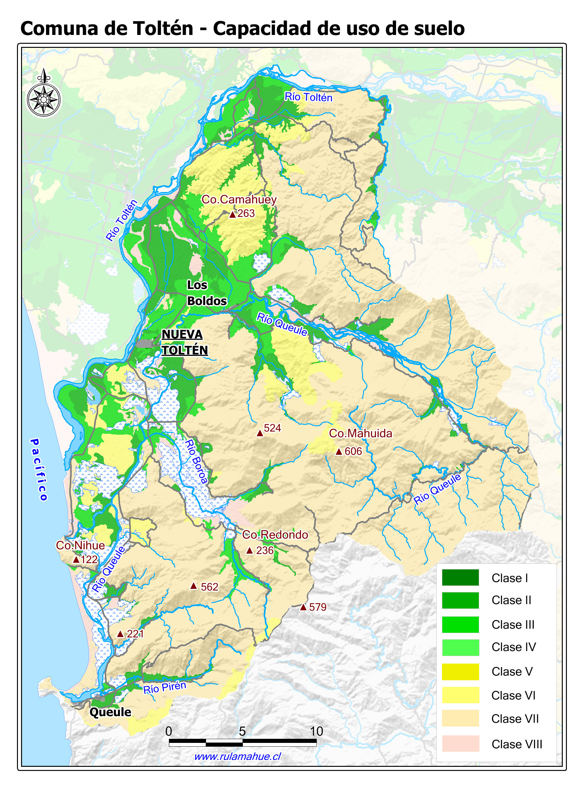 Mapa de la distribución de la capacidad de uso de los suelos CIREN.