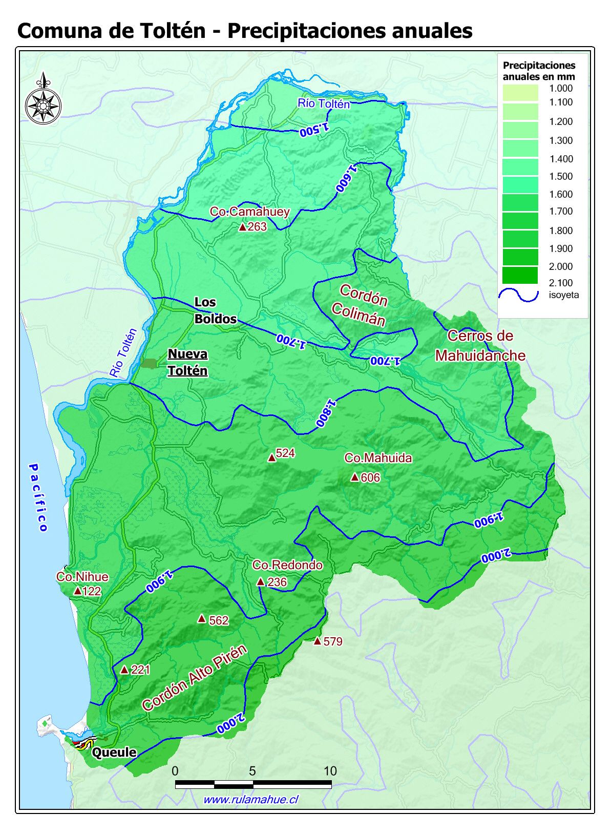 Mapa de la distribución de las precipitaciones anuales con datos del sitio web Worldclim.